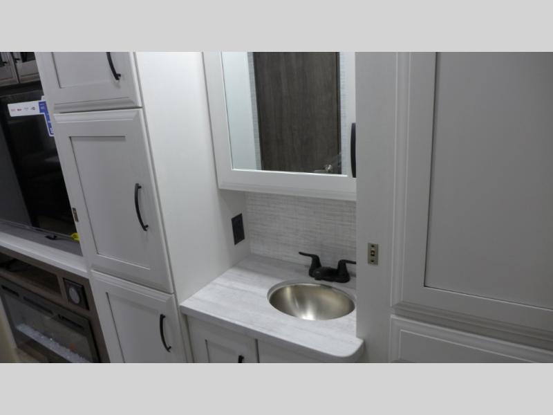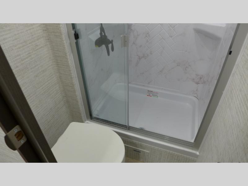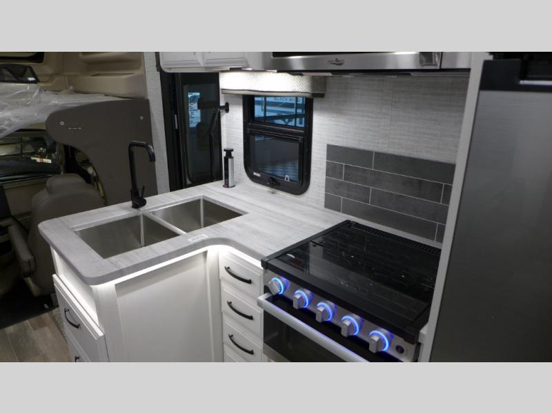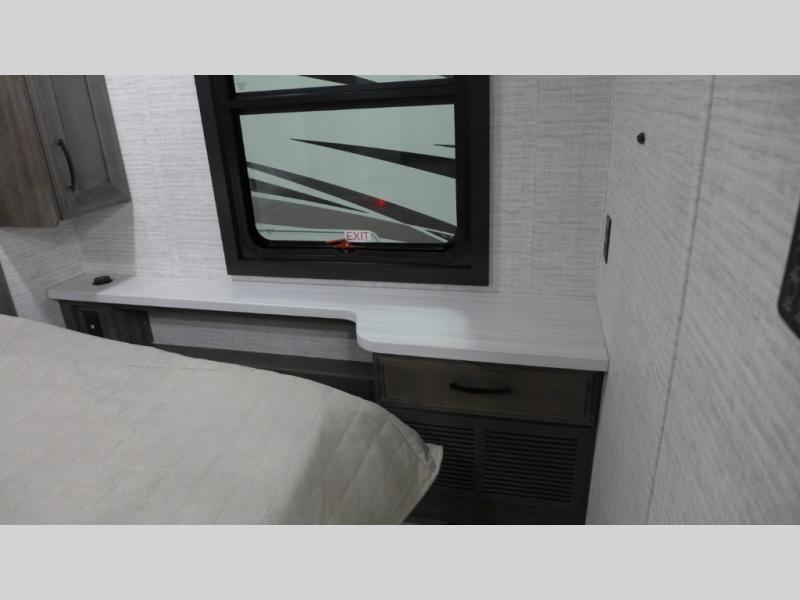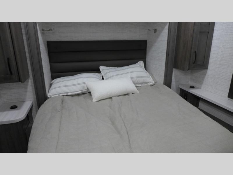 With any Greyhawk Class C gas motorhome by Jayco you will experience smooth sailing thanks to the JRIDE PLUS that comes with Koni shock absorbers, a computer-balanced driveshaft, Hellwig helper springs, and more. The Ford E-450 chassis with a 7.3L V8 325 HP engine will power your excursions, and you'll appreciate the added safety features for your peace of mind. Each model features a Sony infotainment center with Apple CarPlay and Android Auto, backup and side-view cameras, and a tire pressure monitor system the driver is sure to appreciate. Durable construction begins with Stronghold VBL roof, floor and sidewalls, bead-foam insulation, and a one-piece seamless fiberglass front cap. Head inside to find blackout night roller shades, LED-lit pressed countertops, an 84" interior ceiling height, and hardwood cabinet doors and drawers.