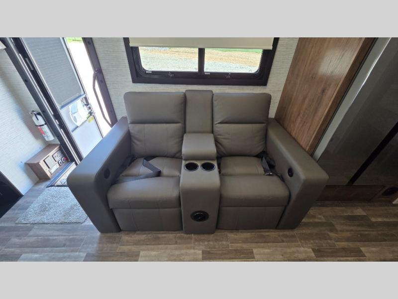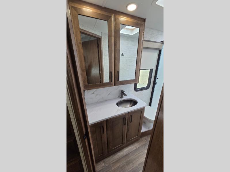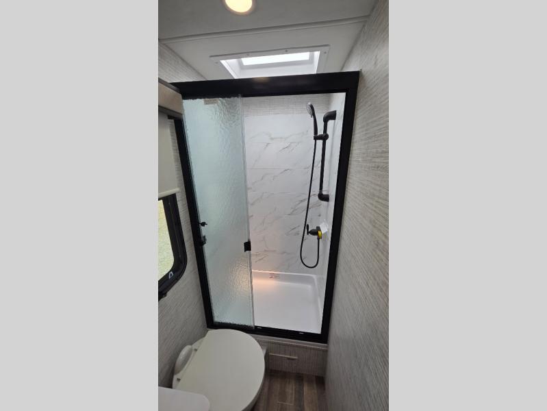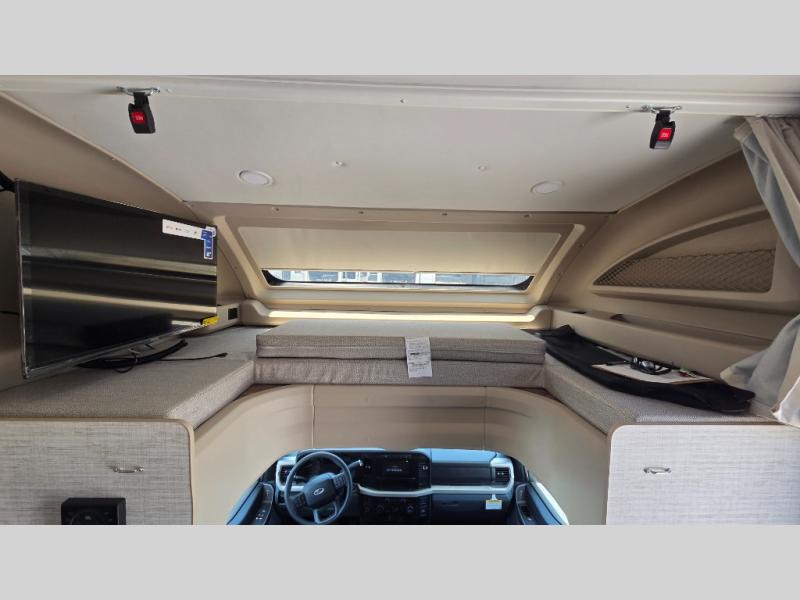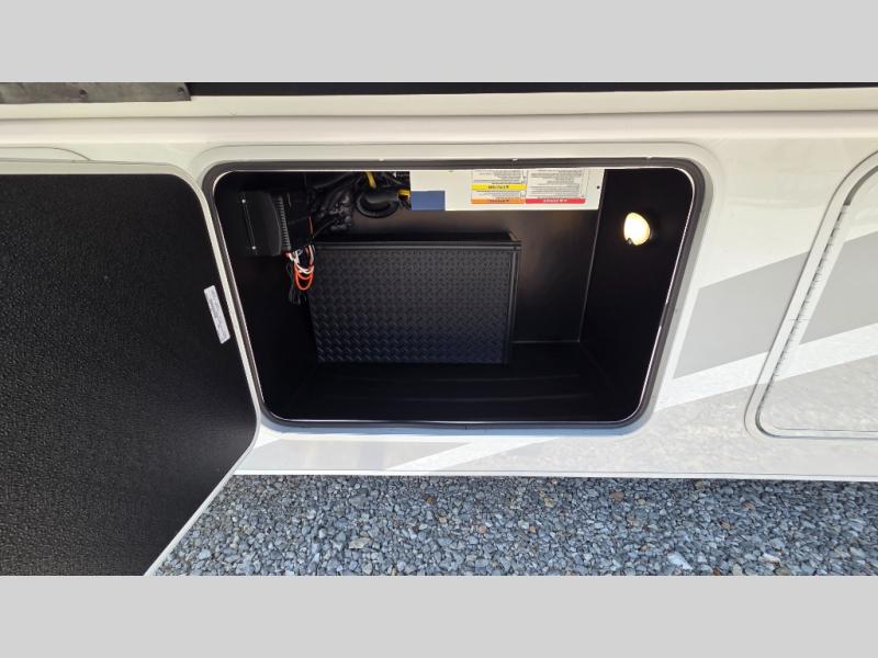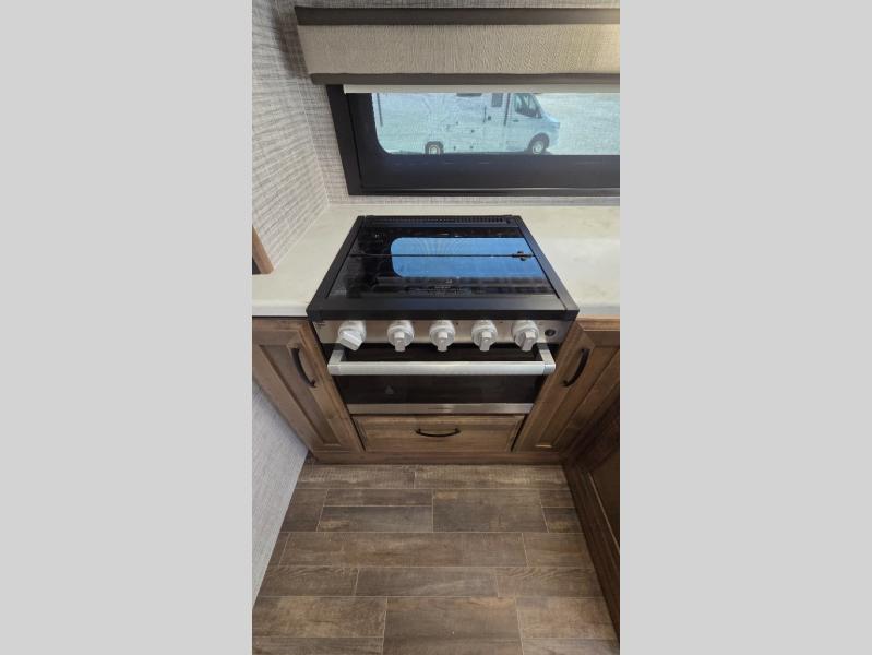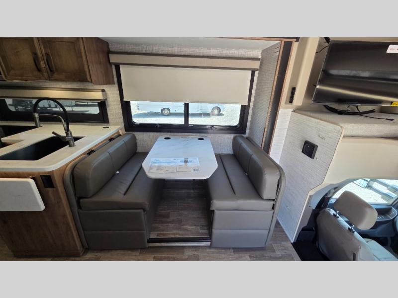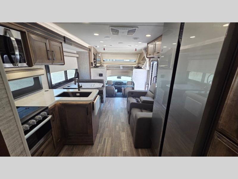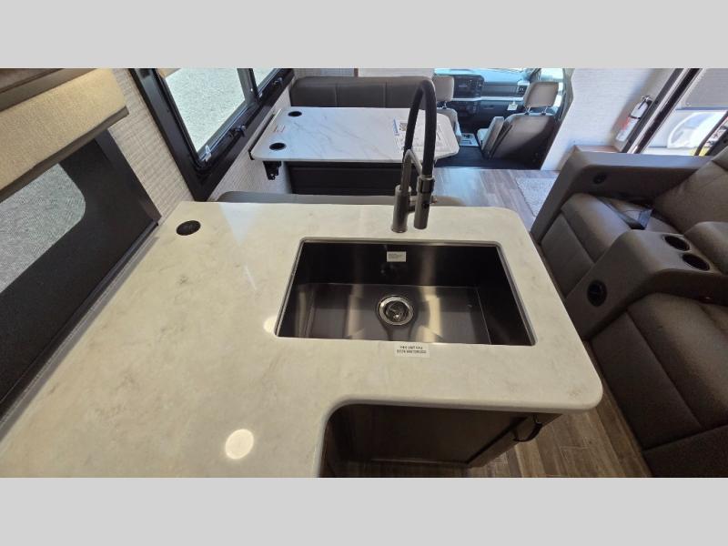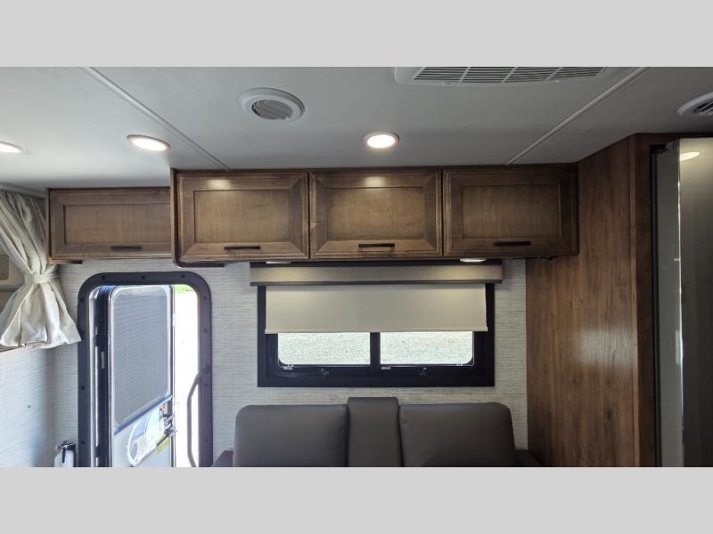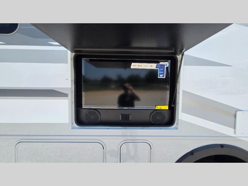 You will have everything you need for a comfortable road trip in this motorhome! Starting with a good night's rest on the 66" x 77" king bed slide in the corner private bedroom which is conveniently next to the rear corner bathroom that has a 30" x 36" shower to freshen up in each morning. Fill your bellies up with delicious homemade cinnamon rolls prepared in the fully equipped kitchen and cooked in the Furrion all-in-one cooktop and oven. Grab a cold beverage from the 10 cu. ft. refrigerator to enjoy while relaxing on the 68" jackknife sofa or play a few card games at the 42" x 70" booth dinette which can also transform into an extra sleeping space. Speaking of extra sleeping, the bunk over cab provides another place for a guest to sleep or you can use it for storage space. You even have an outside entertainment center underneath the 20' electric awning.