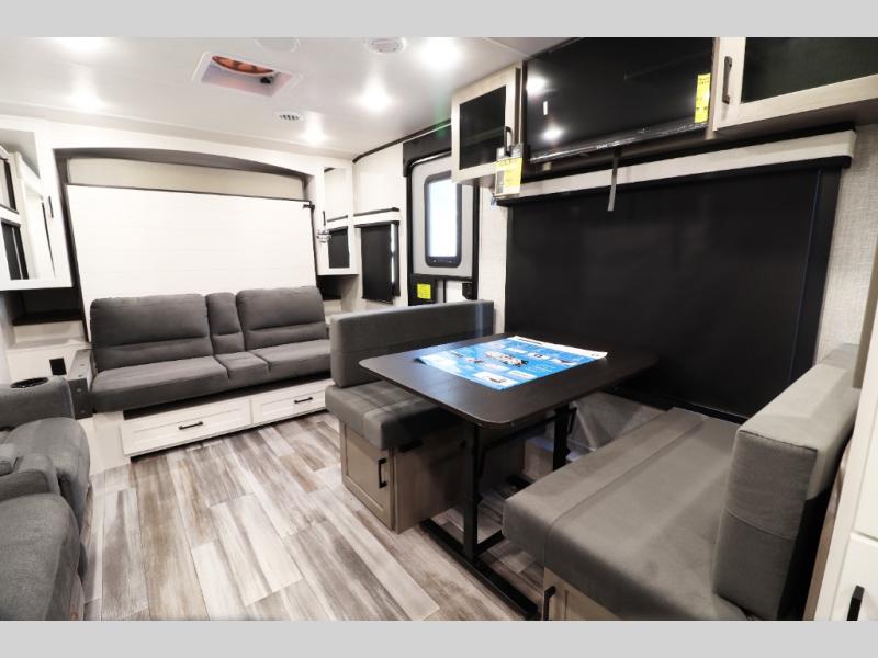 Small families: Flexible Murphy bed + dinette and jack-knife seating, family-friendly bath, off-grid capable.