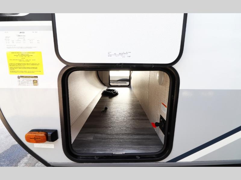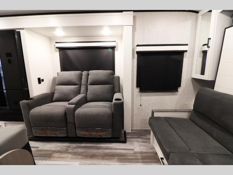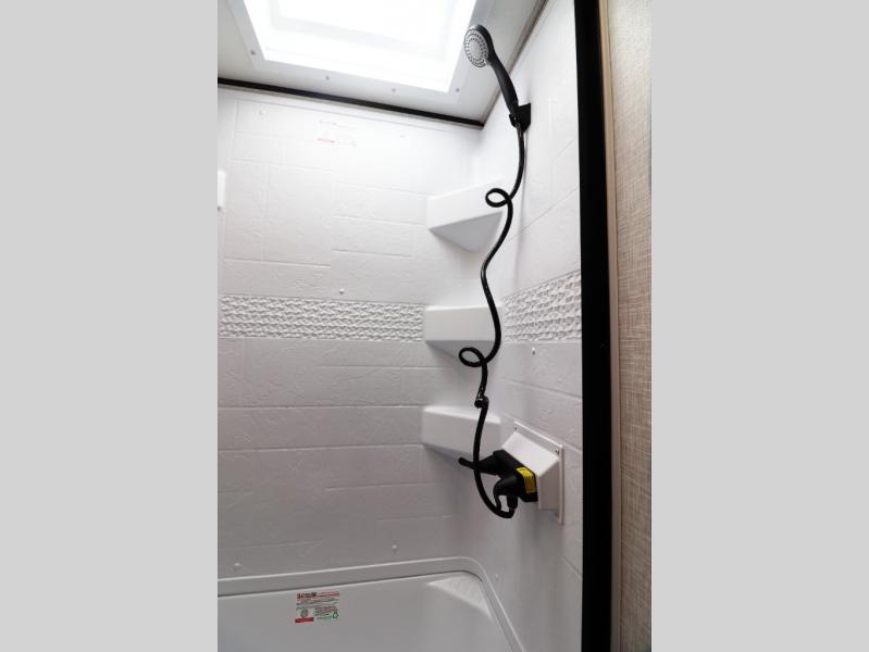 Back-up camera prep, power tongue jack, Rock Solid stabilizers, ladder, spare tire, and durable Stronghold VBL™ Azdel composite walls with MaxTruss™ roof.