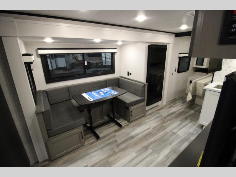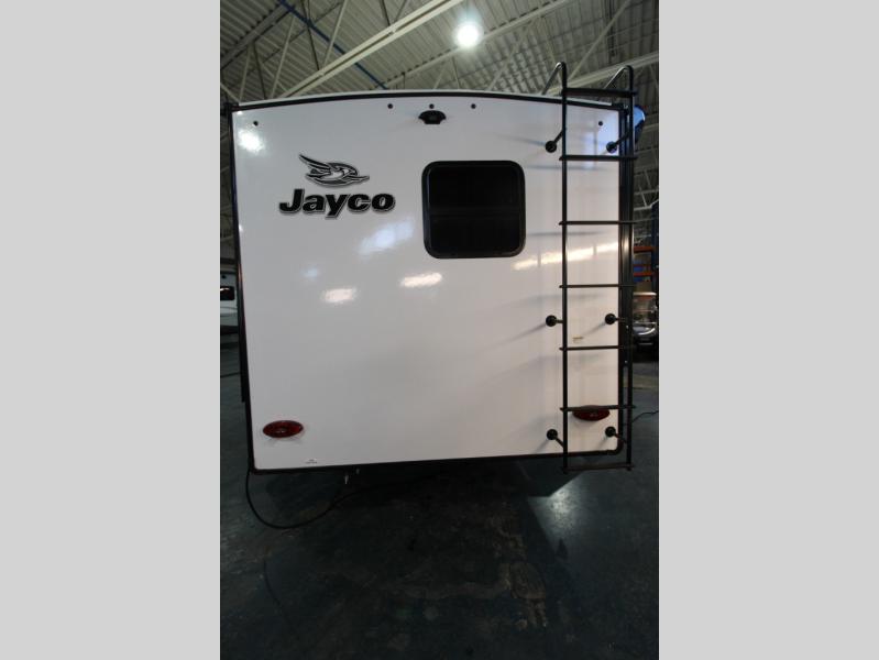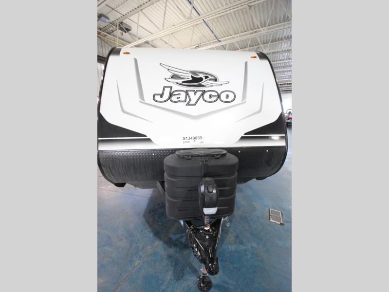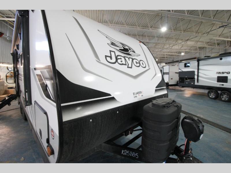 With any Jay Feather travel trailer by Jayco, you will enjoy lightweight towing, convenient exterior amenities, and at-home comforts inside! The Overlander 1 Solar Package included within the Jay Sport Package comes with a 200W solar panel and a 30-amp digital controller so you can enjoy some off-grid camping. There is also a modern graphics package with a dual-colored sidewall, LCI Solid Step fold-down aluminum tread steps on the main entry door, and Climate Shield 0 -100° F tested weather insulation package that will allow you to camp in all sorts of climates. The Customer Value Package will make time outdoors easier than ever with a power tongue jack and a Rock Solid stabilizer system, plus American-made nitro-filled Goodyear tires with self-adjusting electric brakes. More exterior features include a Keyed-Alike locking system, marine grade exterior speakers, a Magnum Truss roof system, and the list goes on! And we haven't even touched on the interior comforts, like the residential style seamless countertops and vinyl flooring throughout, decorative backsplash, handcrafted hardwood door/drawer fronts, and multiple USB charging ports to keep you going!