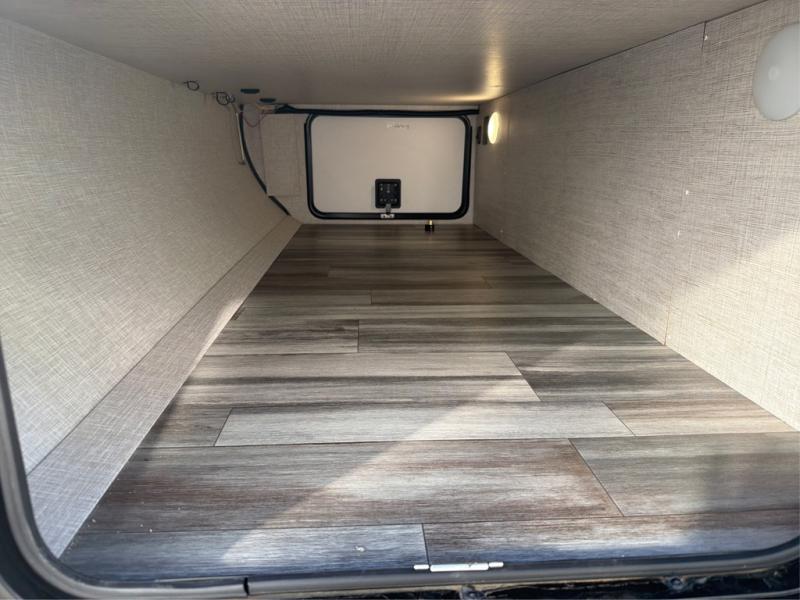 With any Jay Feather travel trailer by Jayco, you will enjoy lightweight towing, convenient exterior amenities, and at-home comforts inside! The Overlander 1 Solar Package included within the Jay Sport Package comes with a 200W solar panel and a 30-amp digital controller so you can enjoy some off-grid camping. There is also a modern graphics package with a dual-colored sidewall, LCI Solid Step fold-down aluminum tread steps on the main entry door, and Climate Shield 0 -100° F tested weather insulation package that will allow you to camp in all sorts of climates. The Customer Value Package will make time outdoors easier than ever with a power tongue jack and a Rock Solid stabilizer system, plus American-made nitro-filled Goodyear tires with self-adjusting electric brakes. More exterior features include a Keyed-Alike locking system, marine grade exterior speakers, a Magnum Truss roof system, and the list goes on! And we haven't even touched on the interior comforts, like the residential style seamless countertops and vinyl flooring throughout, decorative backsplash, handcrafted hardwood door/drawer fronts, and multiple USB charging ports to keep you going!