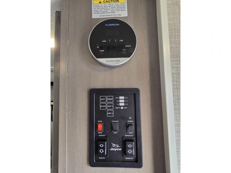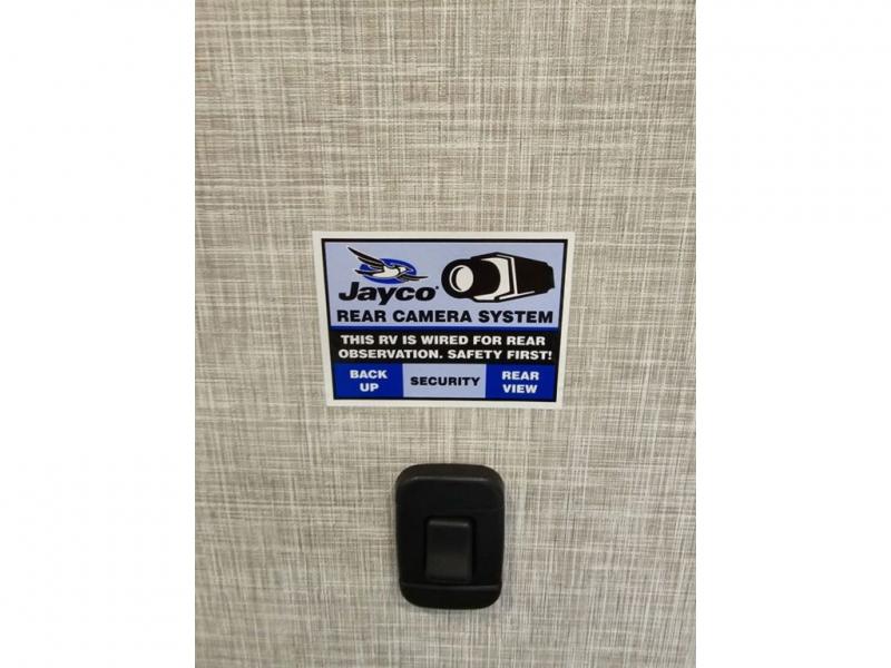 With any Jay Feather travel trailer by Jayco, you will enjoy lightweight towing, convenient exterior amenities, and at-home comforts inside! The Overlander 1 Solar Package included within the Jay Sport Package comes with a 200W solar panel and a 30-amp digital controller so you can enjoy some off-grid camping. There is also a modern graphics package with a dual-colored sidewall, LCI Solid Step fold-down aluminum tread steps on the main entry door, and Climate Shield 0 -100° F tested weather insulation package that will allow you to camp in all sorts of climates. The Customer Value Package will make time outdoors easier than ever with a power tongue jack and a Rock Solid stabilizer system, plus American-made nitro-filled Goodyear tires with self-adjusting electric brakes. More exterior features include a Keyed-Alike locking system, marine grade exterior speakers, a Magnum Truss roof system, and the list goes on! And we haven't even touched on the interior comforts, like the residential style seamless countertops and vinyl flooring throughout, decorative backsplash, handcrafted hardwood door/drawer fronts, and multiple USB charging ports to keep you going!