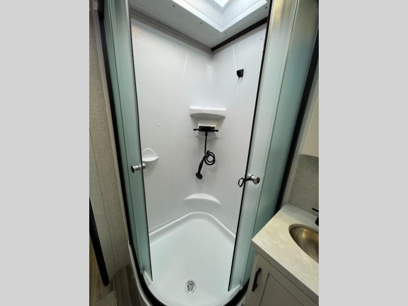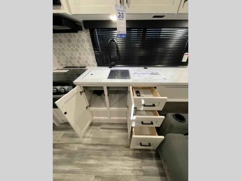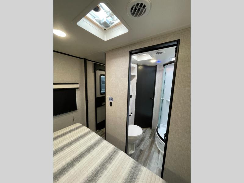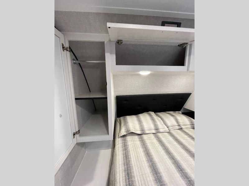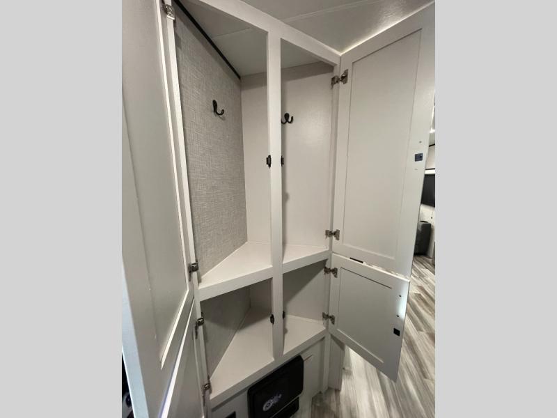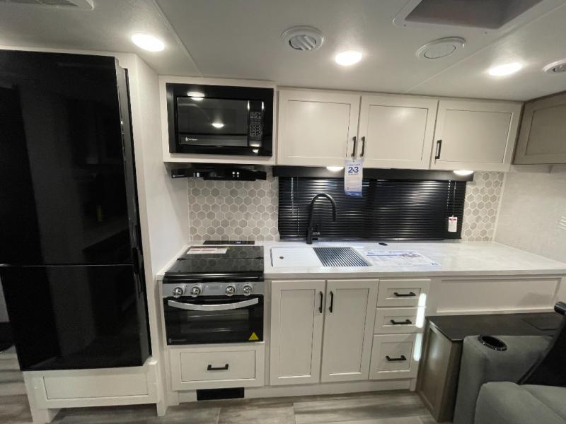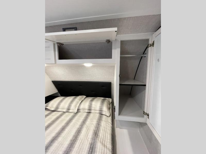 With any Jay Feather travel trailer by Jayco, you will enjoy lightweight towing, convenient exterior amenities, and at-home comforts inside! The Overlander 1 Solar Package included within the Jay Sport Package comes with a 200W solar panel and a 30-amp digital controller so you can enjoy some off-grid camping. There is also a modern graphics package with a dual-colored sidewall, LCI Solid Step fold-down aluminum tread steps on the main entry door, and Climate Shield 0 -100° F tested weather insulation package that will allow you to camp in all sorts of climates. The Customer Value Package will make time outdoors easier than ever with a power tongue jack and a Rock Solid stabilizer system, plus American-made nitro-filled Goodyear tires with self-adjusting electric brakes. More exterior features include a Keyed-Alike locking system, marine grade exterior speakers, a Magnum Truss roof system, and the list goes on! And we haven't even touched on the interior comforts, like the residential style seamless countertops and vinyl flooring throughout, decorative backsplash, handcrafted hardwood door/drawer fronts, and multiple USB charging ports to keep you going!