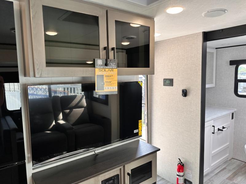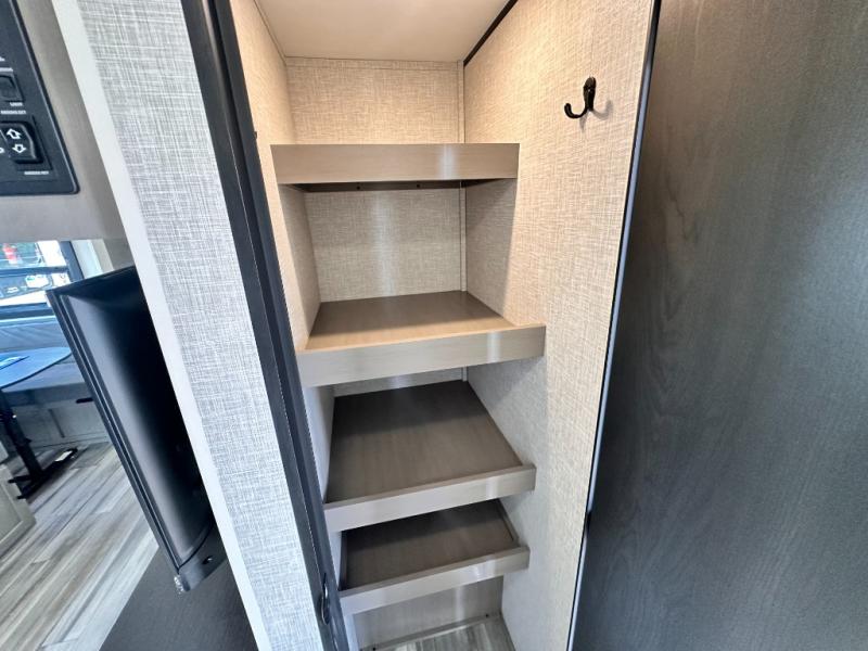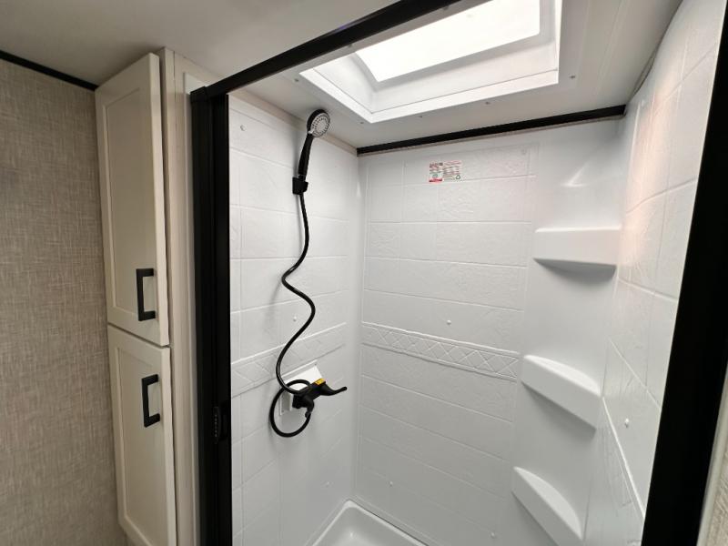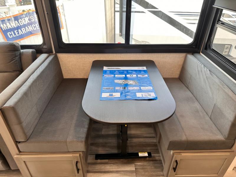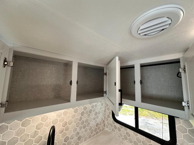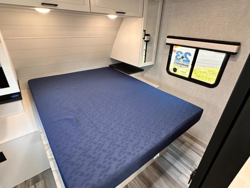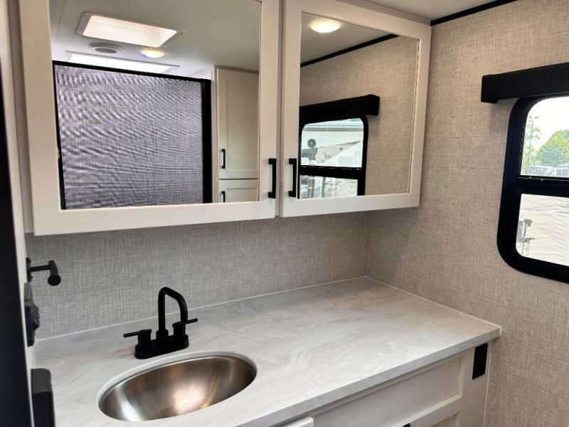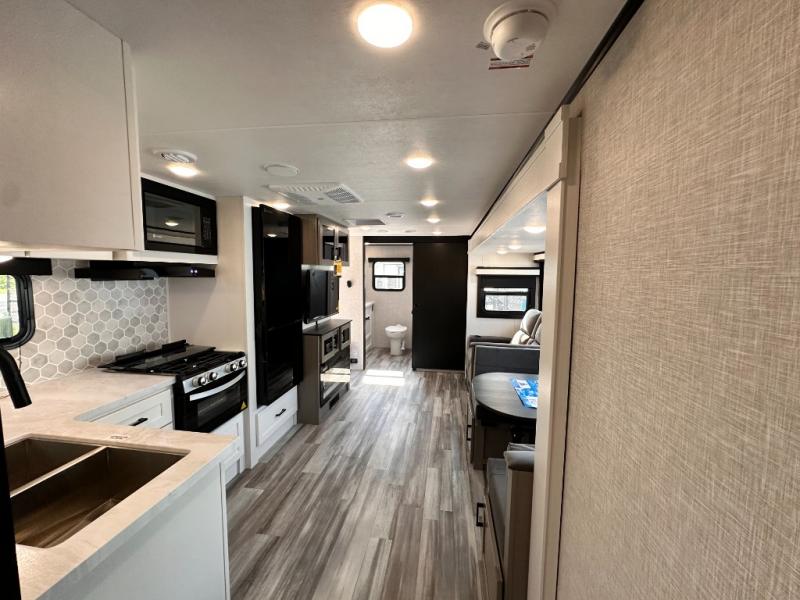 With any Jay Feather travel trailer by Jayco, you will enjoy lightweight towing, convenient exterior amenities, and at-home comforts inside! The Overlander 1 Solar Package included within the Jay Sport Package comes with a 200W solar panel and a 30-amp digital controller so you can enjoy some off-grid camping. There is also a modern graphics package with a dual-colored sidewall, LCI Solid Step fold-down aluminum tread steps on the main entry door, and Climate Shield 0 -100° F tested weather insulation package that will allow you to camp in all sorts of climates. The Customer Value Package will make time outdoors easier than ever with a power tongue jack and a Rock Solid stabilizer system, plus American-made nitro-filled Goodyear tires with self-adjusting electric brakes. More exterior features include a Keyed-Alike locking system, marine grade exterior speakers, a Magnum Truss roof system, and the list goes on! And we haven't even touched on the interior comforts, like the residential style seamless countertops and vinyl flooring throughout, decorative backsplash, handcrafted hardwood door/drawer fronts, and multiple USB charging ports to keep you going!
