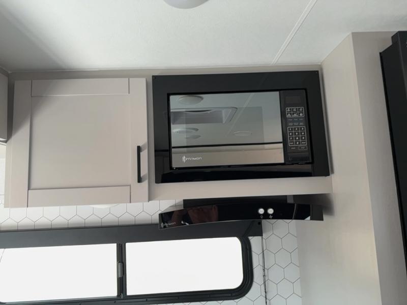 With any Jay Feather travel trailer by Jayco, you will enjoy lightweight towing, convenient exterior amenities, and at-home comforts inside! The Overlander 1 Solar Package included within the Jay Sport Package comes with a 200W solar panel and a 30-amp digital controller so you can enjoy some off-grid camping. There is also a modern graphics package with a dual-colored sidewall, LCI Solid Step fold-down aluminum tread steps on the main entry door, and Climate Shield 0 -100° F tested weather insulation package that will allow you to camp in all sorts of climates. The Customer Value Package will make time outdoors easier than ever with a power tongue jack and a Rock Solid stabilizer system, plus American-made nitro-filled Goodyear tires with self-adjusting electric brakes. More exterior features include a Keyed-Alike locking system, marine grade exterior speakers, a Magnum Truss roof system, and the list goes on! And we haven't even touched on the interior comforts, like the residential style seamless countertops and vinyl flooring throughout, decorative backsplash, handcrafted hardwood door/drawer fronts, and multiple USB charging ports to keep you going!