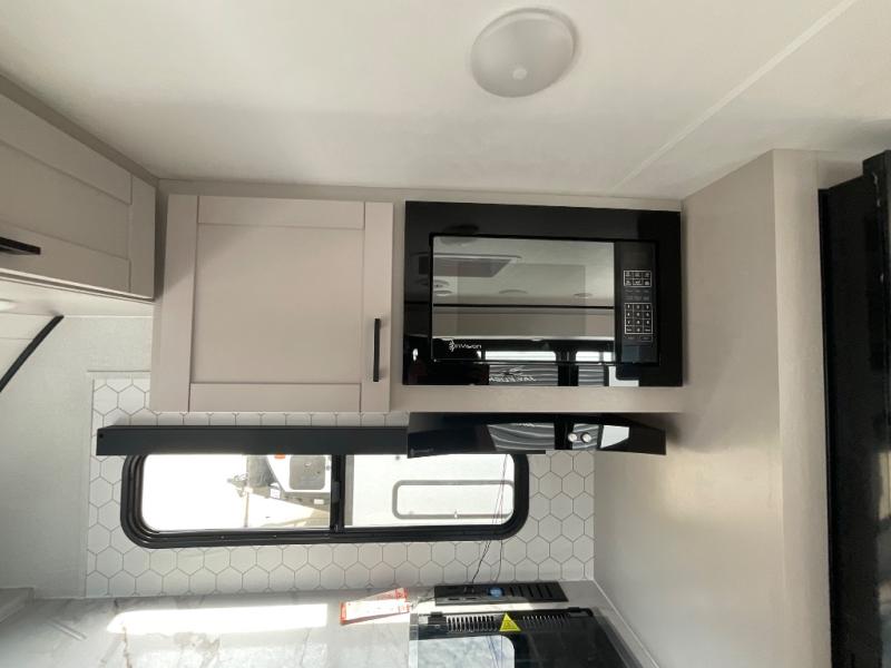 With any Jay Feather travel trailer by Jayco, you will enjoy lightweight towing, convenient exterior amenities, and at-home comforts inside! The Overlander 1 Solar Package included within the Jay Sport Package comes with a 200W solar panel and a 30-amp digital controller so you can enjoy some off-grid camping. There is also a modern graphics package with a dual-colored sidewall, LCI Solid Step fold-down aluminum tread steps on the main entry door, and Climate Shield 0 -100° F tested weather insulation package that will allow you to camp in all sorts of climates. The Customer Value Package will make time outdoors easier than ever with a power tongue jack and a Rock Solid stabilizer system, plus American-made nitro-filled Goodyear tires with self-adjusting electric brakes. More exterior features include a Keyed-Alike locking system, marine grade exterior speakers, a Magnum Truss roof system, and the list goes on! And we haven't even touched on the interior comforts, like the residential style seamless countertops and vinyl flooring throughout, decorative backsplash, handcrafted hardwood door/drawer fronts, and multiple USB charging ports to keep you going!