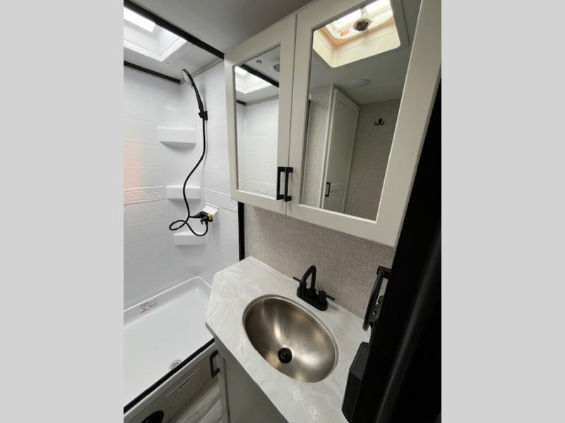 With any Jay Feather travel trailer by Jayco, you will enjoy lightweight towing, convenient exterior amenities, and at-home comforts inside! The Overlander 1 Solar Package included within the Jay Sport Package comes with a 200W solar panel and a 30-amp digital controller so you can enjoy some off-grid camping. There is also a modern graphics package with a dual-colored sidewall, LCI Solid Step fold-down aluminum tread steps on the main entry door, and Climate Shield 0 -100° F tested weather insulation package that will allow you to camp in all sorts of climates. The Customer Value Package will make time outdoors easier than ever with a power tongue jack and a Rock Solid stabilizer system, plus American-made nitro-filled Goodyear tires with self-adjusting electric brakes. More exterior features include a Keyed-Alike locking system, marine grade exterior speakers, a Magnum Truss roof system, and the list goes on! And we haven't even touched on the interior comforts, like the residential style seamless countertops and vinyl flooring throughout, decorative backsplash, handcrafted hardwood door/drawer fronts, and multiple USB charging ports to keep you going!