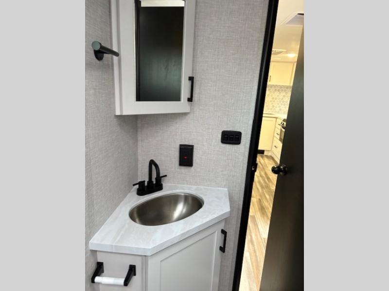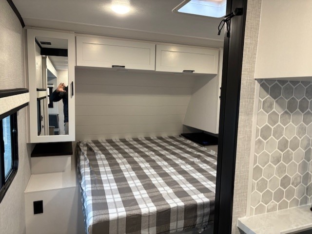 With any Jay Feather travel trailer by Jayco, you will enjoy lightweight towing, convenient exterior amenities, and at-home comforts inside! The Overlander 1 Solar Package included within the Jay Sport Package comes with a 200W solar panel and a 30-amp digital controller so you can enjoy some off-grid camping. There is also a modern graphics package with a dual-colored sidewall, LCI Solid Step fold-down aluminum tread steps on the main entry door, and Climate Shield 0 -100° F tested weather insulation package that will allow you to camp in all sorts of climates. The Customer Value Package will make time outdoors easier than ever with a power tongue jack and a Rock Solid stabilizer system, plus American-made nitro-filled Goodyear tires with self-adjusting electric brakes. More exterior features include a Keyed-Alike locking system, marine grade exterior speakers, a Magnum Truss roof system, and the list goes on! And we haven't even touched on the interior comforts, like the residential style seamless countertops and vinyl flooring throughout, decorative backsplash, handcrafted hardwood door/drawer fronts, and multiple USB charging ports to keep you going!