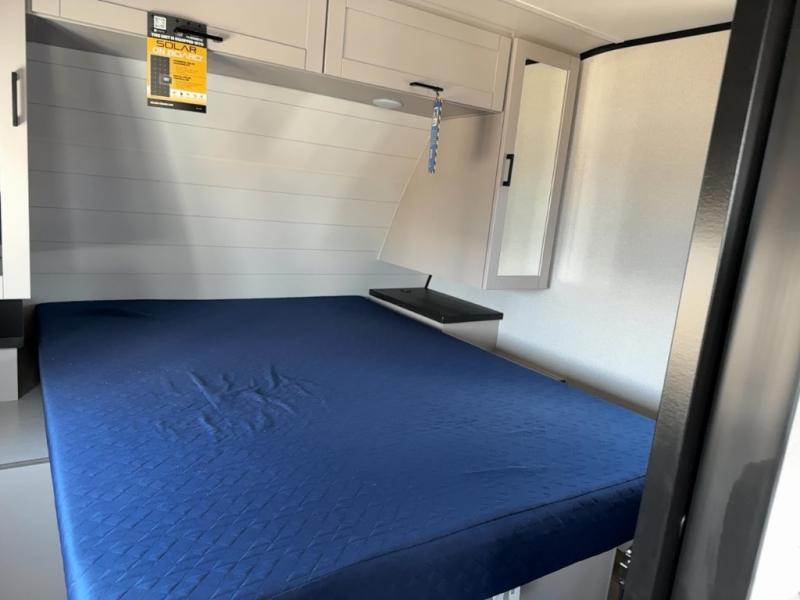 With any Jay Feather travel trailer by Jayco, you will enjoy lightweight towing, convenient exterior amenities, and at-home comforts inside! The Overlander 1 Solar Package included within the Jay Sport Package comes with a 200W solar panel and a 30-amp digital controller so you can enjoy some off-grid camping. There is also a modern graphics package with a dual-colored sidewall, LCI Solid Step fold-down aluminum tread steps on the main entry door, and Climate Shield 0 -100° F tested weather insulation package that will allow you to camp in all sorts of climates. The Customer Value Package will make time outdoors easier than ever with a power tongue jack and a Rock Solid stabilizer system, plus American-made nitro-filled Goodyear tires with self-adjusting electric brakes. More exterior features include a Keyed-Alike locking system, marine grade exterior speakers, a Magnum Truss roof system, and the list goes on! And we haven't even touched on the interior comforts, like the residential style seamless countertops and vinyl flooring throughout, decorative backsplash, handcrafted hardwood door/drawer fronts, and multiple USB charging ports to keep you going!