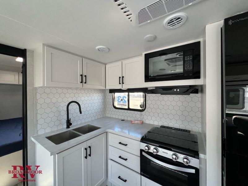 With any Jay Feather travel trailer by Jayco, you will enjoy lightweight towing, convenient exterior amenities, and at-home comforts inside! The Overlander 1 Solar Package included within the Jay Sport Package comes with a 200W solar panel and a 30-amp digital controller so you can enjoy some off-grid camping. There is also a modern graphics package with a dual-colored sidewall, LCI Solid Step fold-down aluminum tread steps on the main entry door, and Climate Shield 0 -100° F tested weather insulation package that will allow you to camp in all sorts of climates. The Customer Value Package will make time outdoors easier than ever with a power tongue jack and a Rock Solid stabilizer system, plus American-made nitro-filled Goodyear tires with self-adjusting electric brakes. More exterior features include a Keyed-Alike locking system, marine grade exterior speakers, a Magnum Truss roof system, and the list goes on! And we haven't even touched on the interior comforts, like the residential style seamless countertops and vinyl flooring throughout, decorative backsplash, handcrafted hardwood door/drawer fronts, and multiple USB charging ports to keep you going!