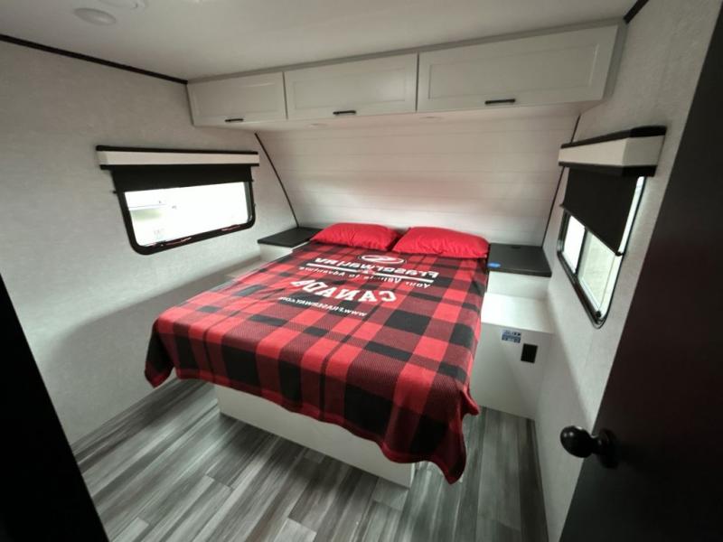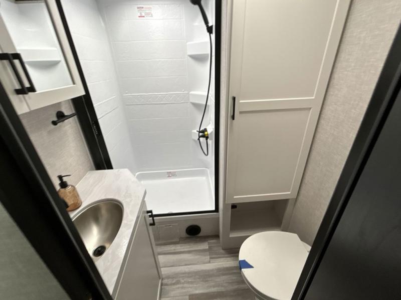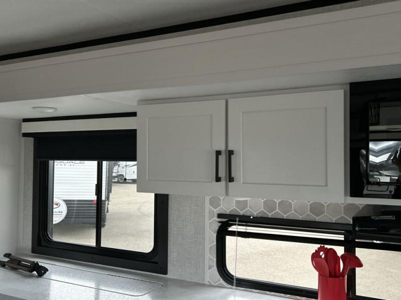 With any Jay Feather travel trailer by Jayco, you will enjoy lightweight towing, convenient exterior amenities, and at-home comforts inside! The Overlander 1 Solar Package included within the Jay Sport Package comes with a 200W solar panel and a 30-amp digital controller so you can enjoy some off-grid camping. There is also a modern graphics package with a dual-colored sidewall, LCI Solid Step fold-down aluminum tread steps on the main entry door, and Climate Shield 0 -100° F tested weather insulation package that will allow you to camp in all sorts of climates. The Customer Value Package will make time outdoors easier than ever with a power tongue jack and a Rock Solid stabilizer system, plus American-made nitro-filled Goodyear tires with self-adjusting electric brakes. More exterior features include a Keyed-Alike locking system, marine grade exterior speakers, a Magnum Truss roof system, and the list goes on! And we haven't even touched on the interior comforts, like the residential style seamless countertops and vinyl flooring throughout, decorative backsplash, handcrafted hardwood door/drawer fronts, and multiple USB charging ports to keep you going!