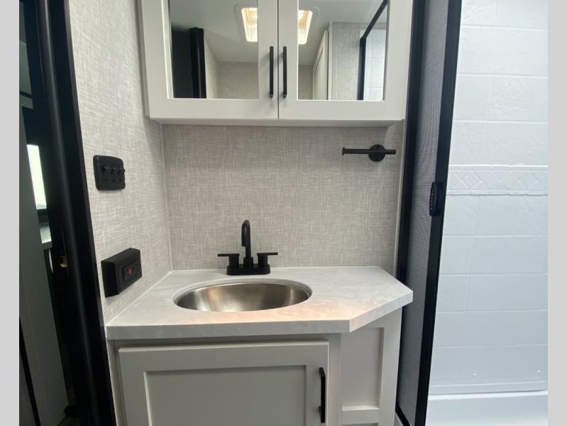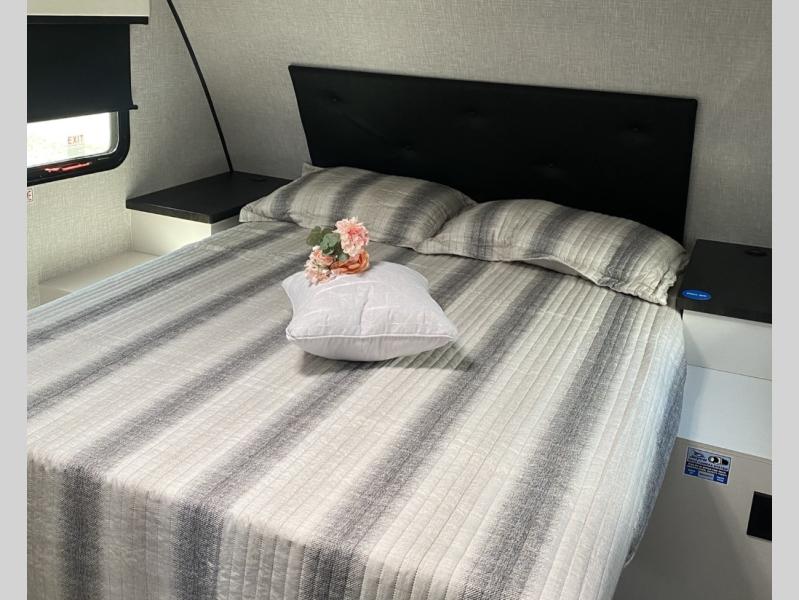 With any Jay Feather travel trailer by Jayco, you will enjoy lightweight towing, convenient exterior amenities, and at-home comforts inside! The Overlander 1 Solar Package included within the Jay Sport Package comes with a 200W solar panel and a 30-amp digital controller so you can enjoy some off-grid camping. There is also a modern graphics package with a dual-colored sidewall, LCI Solid Step fold-down aluminum tread steps on the main entry door, and Climate Shield 0 -100° F tested weather insulation package that will allow you to camp in all sorts of climates. The Customer Value Package will make time outdoors easier than ever with a power tongue jack and a Rock Solid stabilizer system, plus American-made nitro-filled Goodyear tires with self-adjusting electric brakes. More exterior features include a Keyed-Alike locking system, marine grade exterior speakers, a Magnum Truss roof system, and the list goes on! And we haven't even touched on the interior comforts, like the residential style seamless countertops and vinyl flooring throughout, decorative backsplash, handcrafted hardwood door/drawer fronts, and multiple USB charging ports to keep you going!