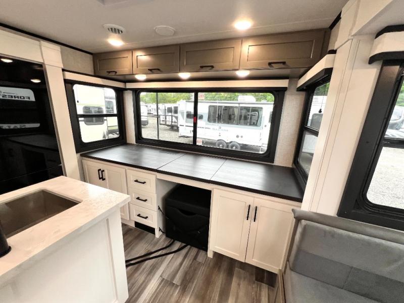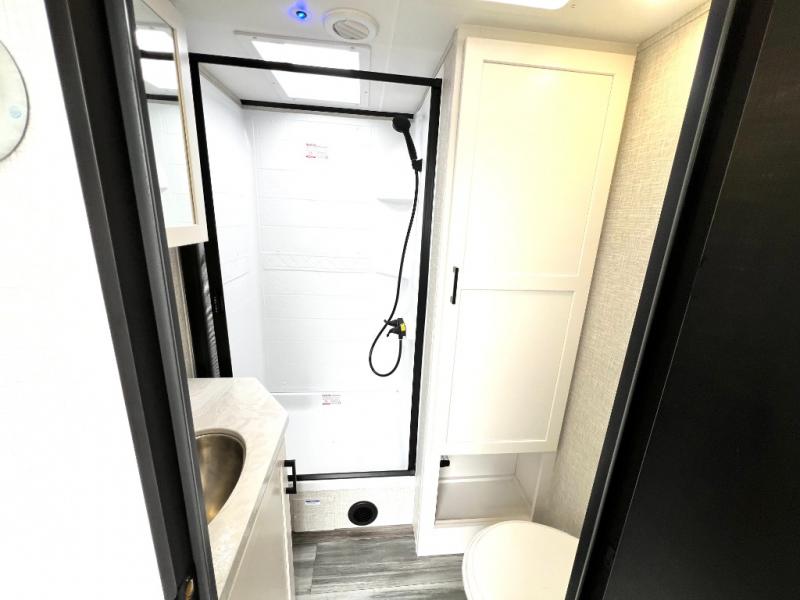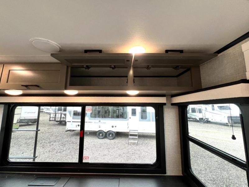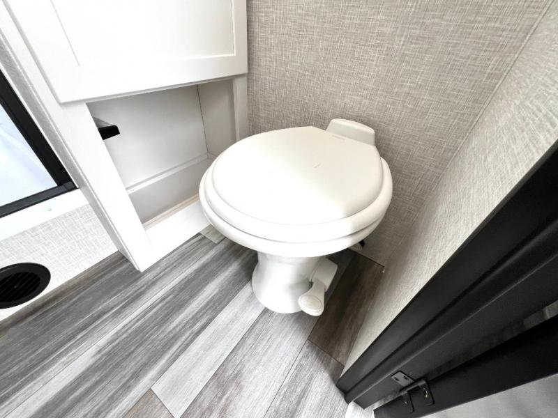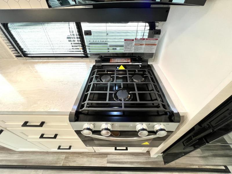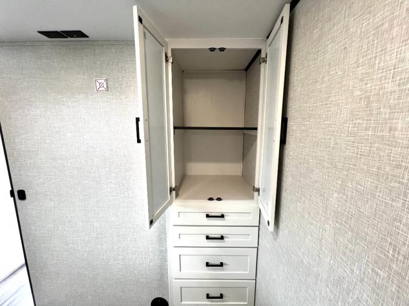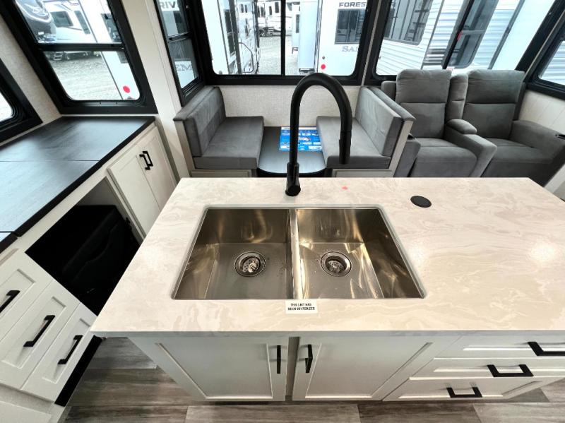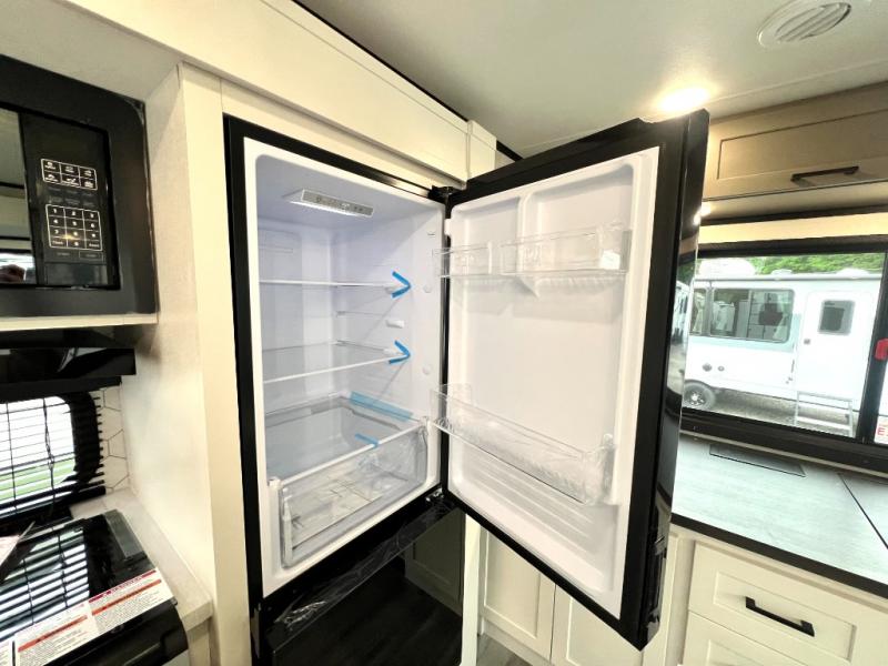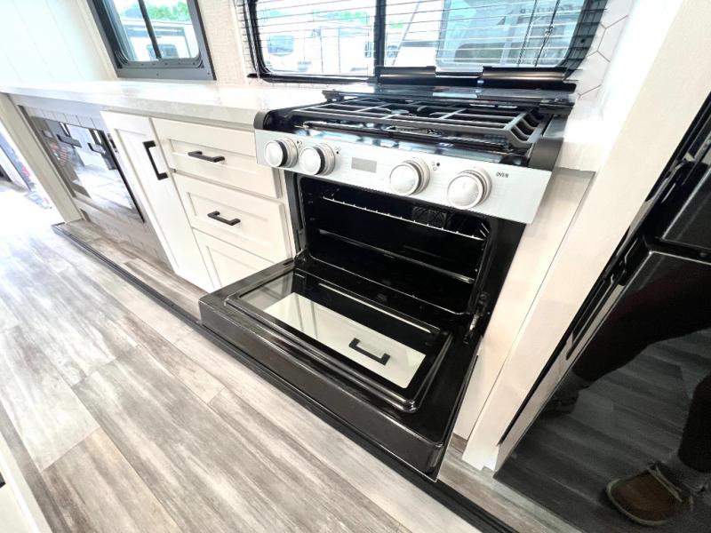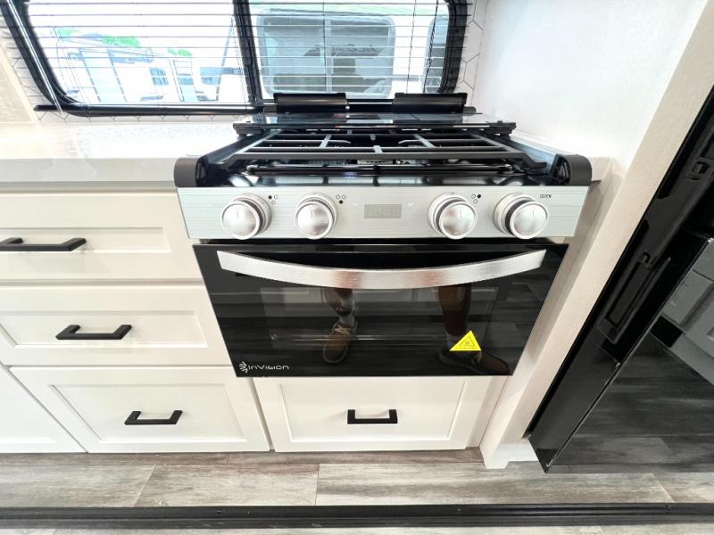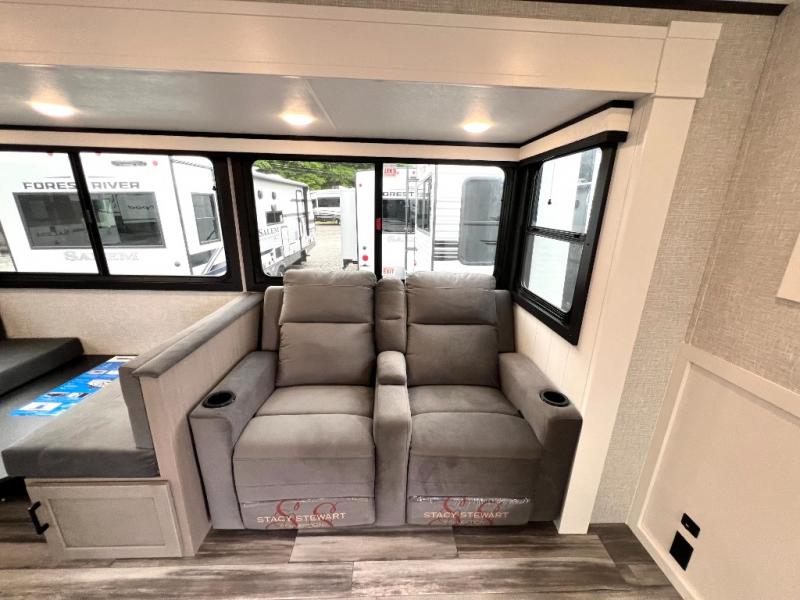 Perfect for weekend trips or extended stays, this travel trailer is the one! You will find a rear desk with an ottoman plus overhead storage if you plan to work while you're away from home. The dual opposing slides in the combined kitchen and living area will create an open floorplan, and the kitchen island will provide the chef of your group with more counter space. There is a tri-fold sofa and booth dinette that double as seating and sleeping space, and the full bath onboard will keep everyone clean. Don't overlook the front private bedroom with a queen bed and plenty of storage space for your belongings!