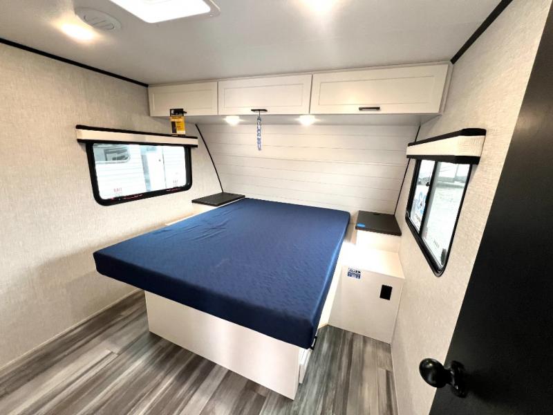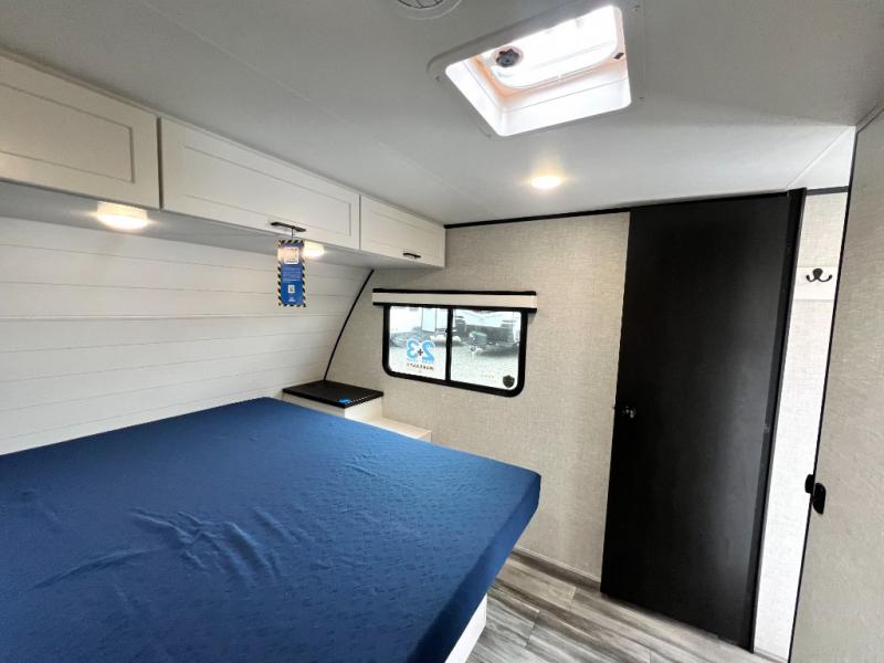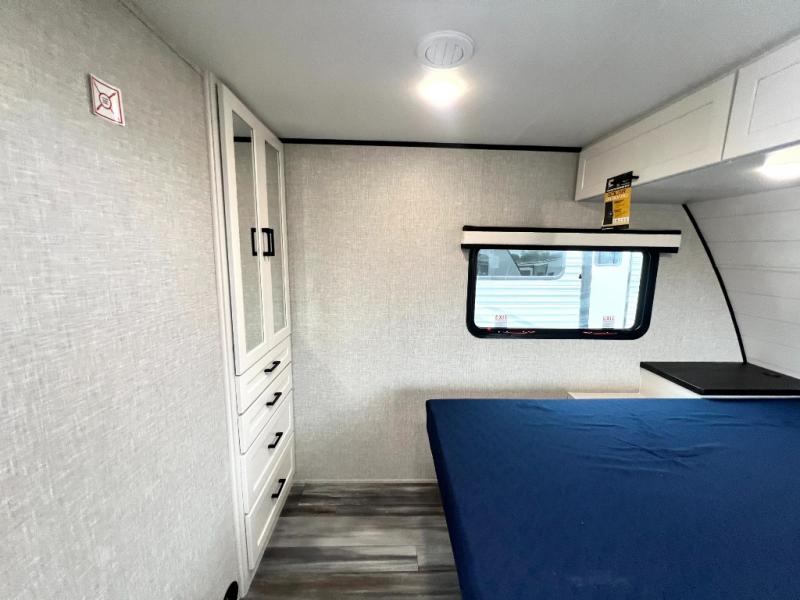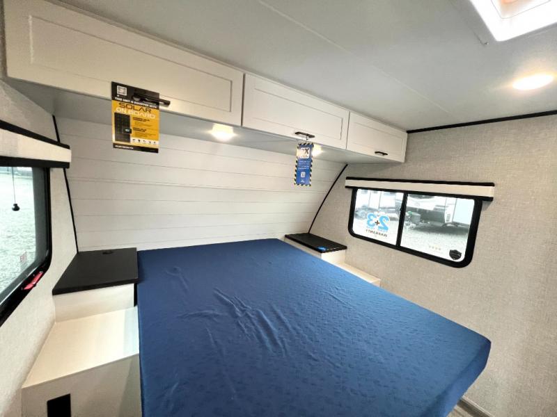 With any Jay Feather travel trailer by Jayco, you will enjoy lightweight towing, convenient exterior amenities, and at-home comforts inside! The Overlander 1 Solar Package included within the Jay Sport Package comes with a 200W solar panel and a 30-amp digital controller so you can enjoy some off-grid camping. There is also a modern graphics package with a dual-colored sidewall, LCI Solid Step fold-down aluminum tread steps on the main entry door, and Climate Shield 0 -100° F tested weather insulation package that will allow you to camp in all sorts of climates. The Customer Value Package will make time outdoors easier than ever with a power tongue jack and a Rock Solid stabilizer system, plus American-made nitro-filled Goodyear tires with self-adjusting electric brakes. More exterior features include a Keyed-Alike locking system, marine grade exterior speakers, a Magnum Truss roof system, and the list goes on! And we haven't even touched on the interior comforts, like the residential style seamless countertops and vinyl flooring throughout, decorative backsplash, handcrafted hardwood door/drawer fronts, and multiple USB charging ports to keep you going!