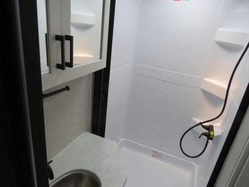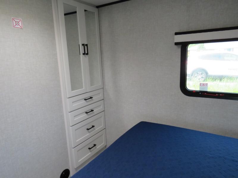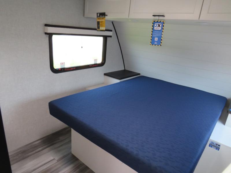 With any Jay Feather travel trailer by Jayco, you will enjoy lightweight towing, convenient exterior amenities, and at-home comforts inside! The Overlander 1 Solar Package included within the Jay Sport Package comes with a 200W solar panel and a 30-amp digital controller so you can enjoy some off-grid camping. There is also a modern graphics package with a dual-colored sidewall, LCI Solid Step fold-down aluminum tread steps on the main entry door, and Climate Shield 0 -100° F tested weather insulation package that will allow you to camp in all sorts of climates. The Customer Value Package will make time outdoors easier than ever with a power tongue jack and a Rock Solid stabilizer system, plus American-made nitro-filled Goodyear tires with self-adjusting electric brakes. More exterior features include a Keyed-Alike locking system, marine grade exterior speakers, a Magnum Truss roof system, and the list goes on! And we haven't even touched on the interior comforts, like the residential style seamless countertops and vinyl flooring throughout, decorative backsplash, handcrafted hardwood door/drawer fronts, and multiple USB charging ports to keep you going!