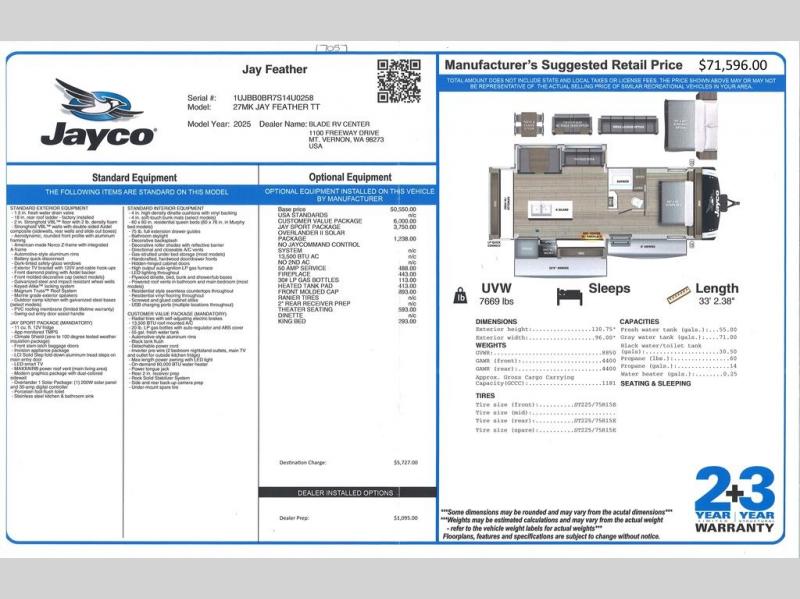 New 2025 Jayco Jay Feather 27MK Travel Trailer