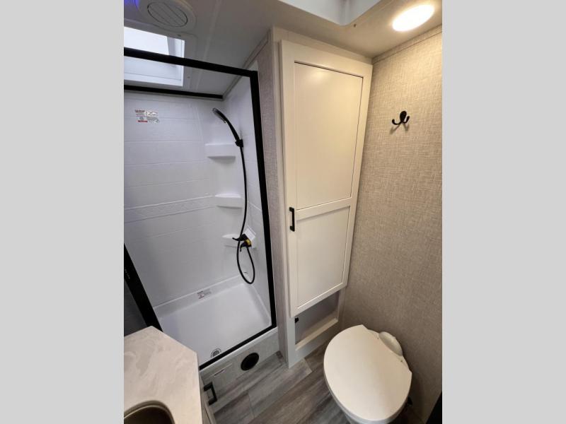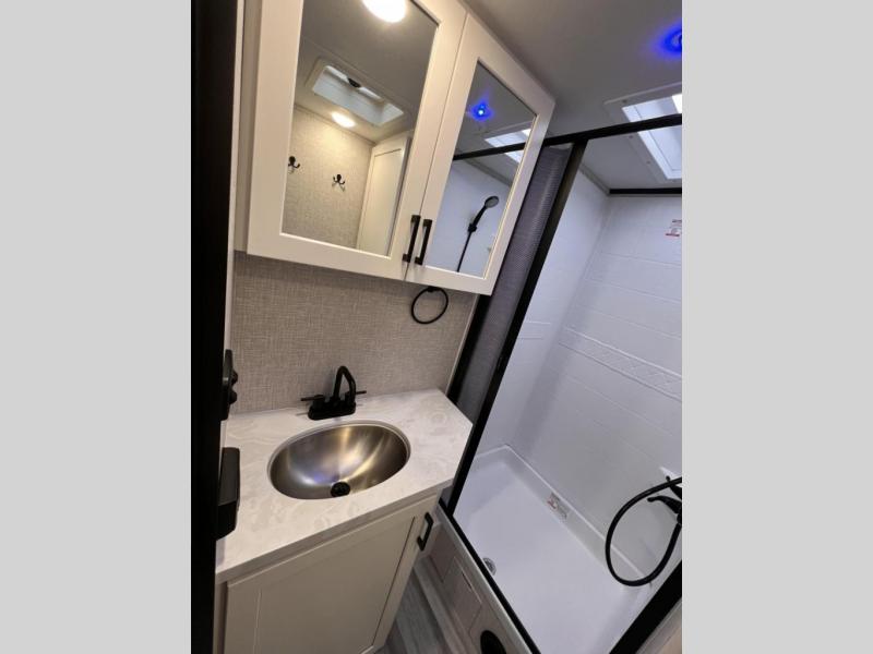 With any Jay Feather travel trailer by Jayco, you will enjoy lightweight towing, convenient exterior amenities, and at-home comforts inside! The Overlander 1 Solar Package included within the Jay Sport Package comes with a 200W solar panel and a 30-amp digital controller so you can enjoy some off-grid camping. There is also a modern graphics package with a dual-colored sidewall, LCI Solid Step fold-down aluminum tread steps on the main entry door, and Climate Shield 0 -100° F tested weather insulation package that will allow you to camp in all sorts of climates. The Customer Value Package will make time outdoors easier than ever with a power tongue jack and a Rock Solid stabilizer system, plus American-made nitro-filled Goodyear tires with self-adjusting electric brakes. More exterior features include a Keyed-Alike locking system, marine grade exterior speakers, a Magnum Truss roof system, and the list goes on! And we haven't even touched on the interior comforts, like the residential style seamless countertops and vinyl flooring throughout, decorative backsplash, handcrafted hardwood door/drawer fronts, and multiple USB charging ports to keep you going!