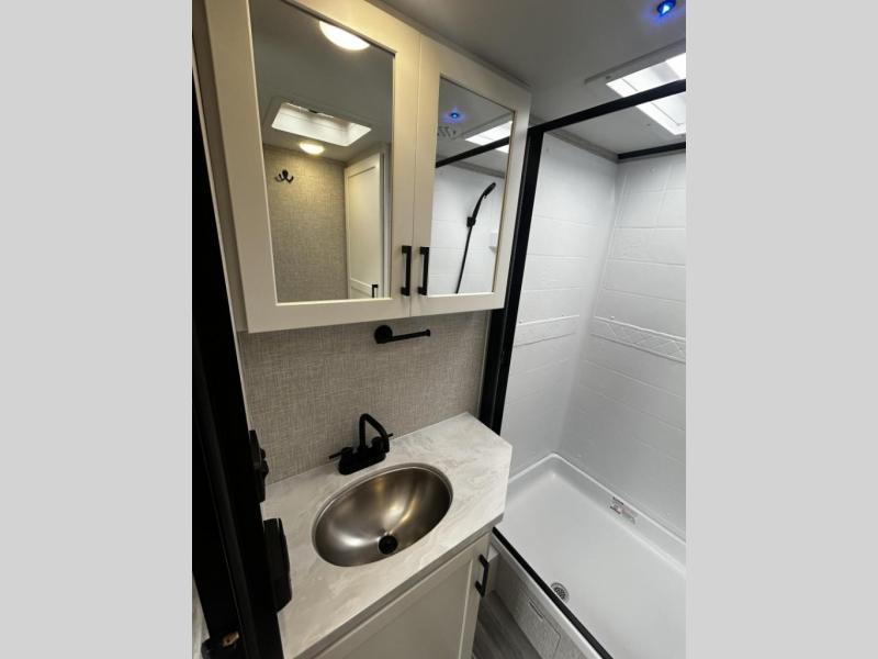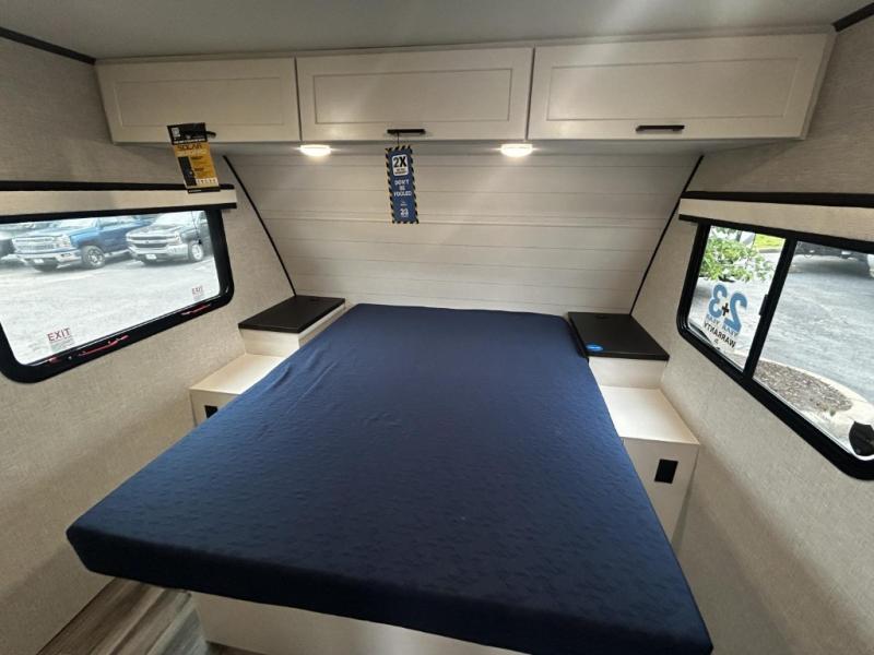 With any Jay Feather travel trailer by Jayco, you will enjoy lightweight towing, convenient exterior amenities, and at-home comforts inside! The Overlander 1 Solar Package included within the Jay Sport Package comes with a 200W solar panel and a 30-amp digital controller so you can enjoy some off-grid camping. There is also a modern graphics package with a dual-colored sidewall, LCI Solid Step fold-down aluminum tread steps on the main entry door, and Climate Shield 0 -100° F tested weather insulation package that will allow you to camp in all sorts of climates. The Customer Value Package will make time outdoors easier than ever with a power tongue jack and a Rock Solid stabilizer system, plus American-made nitro-filled Goodyear tires with self-adjusting electric brakes. More exterior features include a Keyed-Alike locking system, marine grade exterior speakers, a Magnum Truss roof system, and the list goes on! And we haven't even touched on the interior comforts, like the residential style seamless countertops and vinyl flooring throughout, decorative backsplash, handcrafted hardwood door/drawer fronts, and multiple USB charging ports to keep you going!