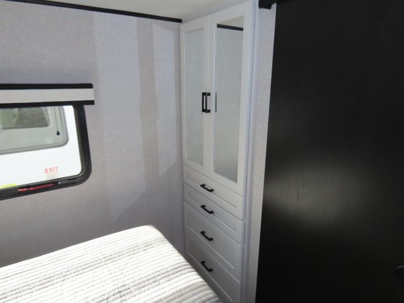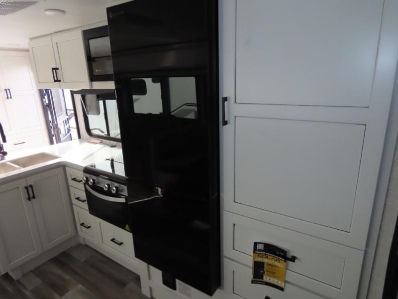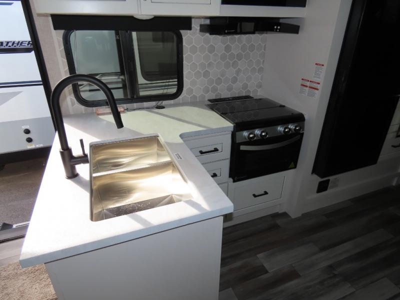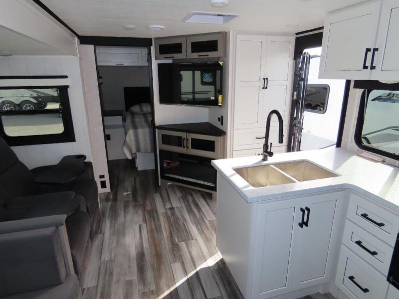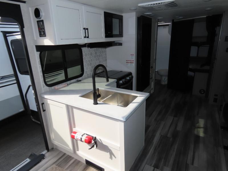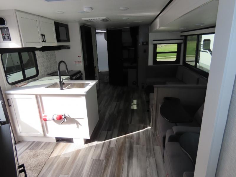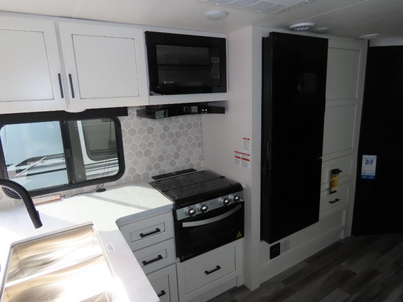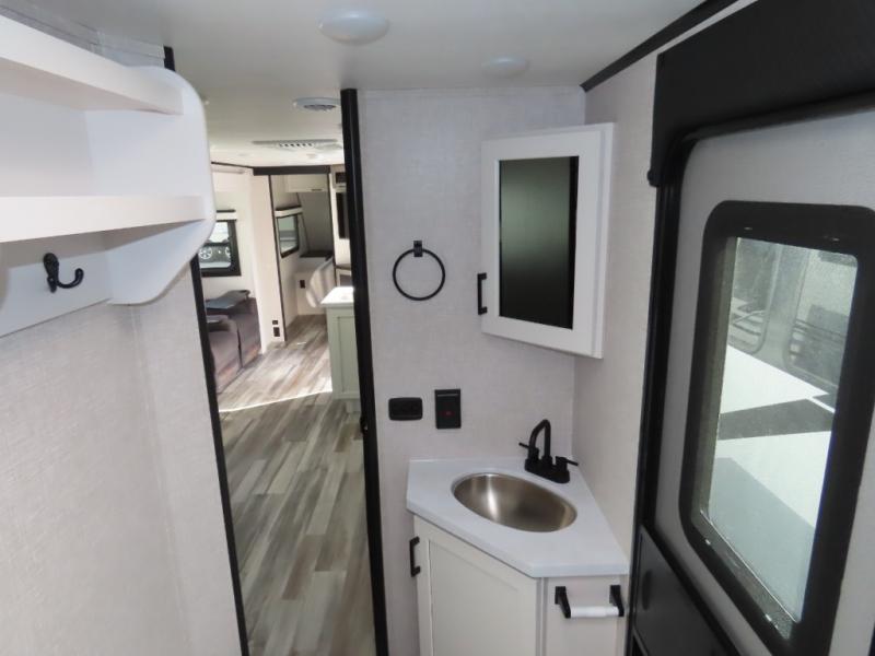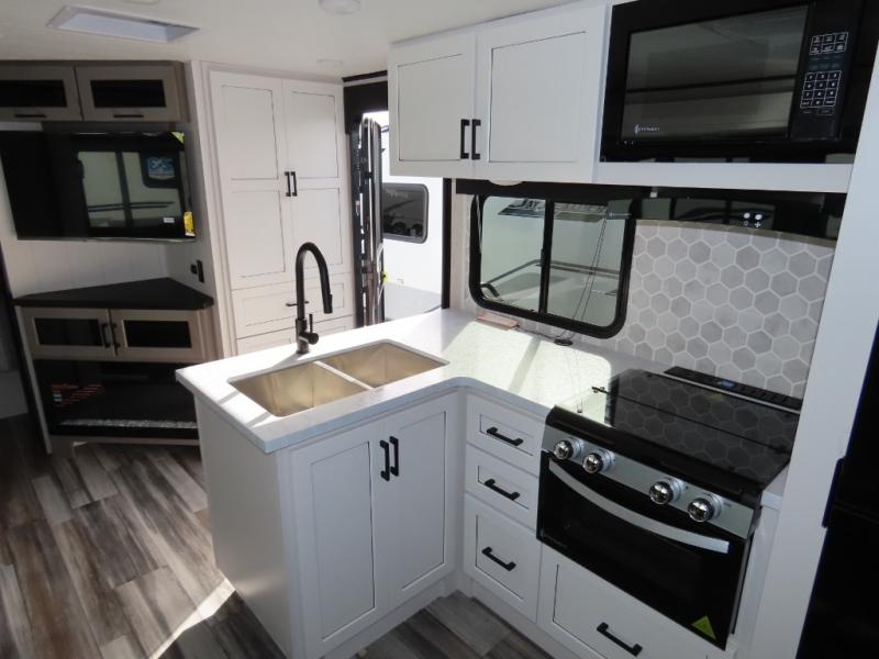 With any Jay Feather travel trailer by Jayco, you will enjoy lightweight towing, convenient exterior amenities, and at-home comforts inside! The Overlander 1 Solar Package included within the Jay Sport Package comes with a 200W solar panel and a 30-amp digital controller so you can enjoy some off-grid camping. There is also a modern graphics package with a dual-colored sidewall, LCI Solid Step fold-down aluminum tread steps on the main entry door, and Climate Shield 0 -100° F tested weather insulation package that will allow you to camp in all sorts of climates. The Customer Value Package will make time outdoors easier than ever with a power tongue jack and a Rock Solid stabilizer system, plus American-made nitro-filled Goodyear tires with self-adjusting electric brakes. More exterior features include a Keyed-Alike locking system, marine grade exterior speakers, a Magnum Truss roof system, and the list goes on! And we haven't even touched on the interior comforts, like the residential style seamless countertops and vinyl flooring throughout, decorative backsplash, handcrafted hardwood door/drawer fronts, and multiple USB charging ports to keep you going!