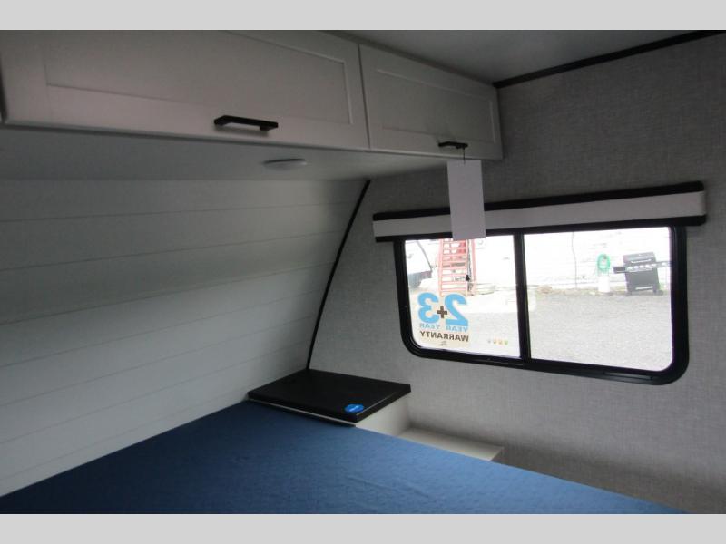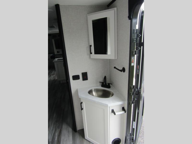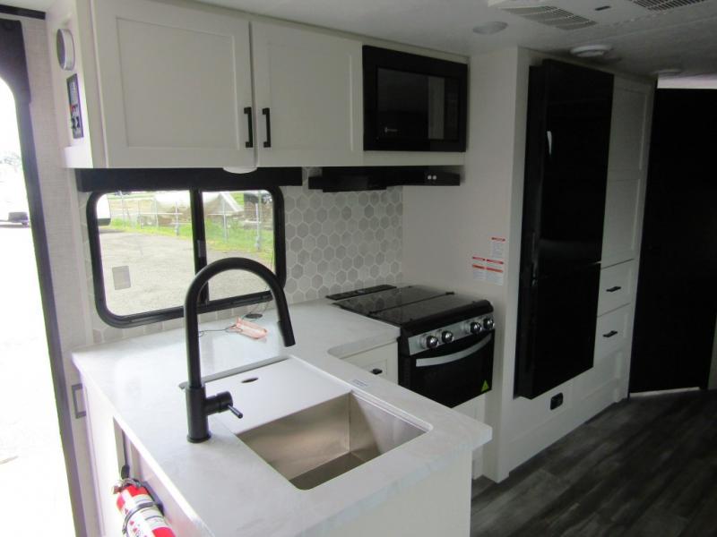 With any Jay Feather travel trailer by Jayco, you will enjoy lightweight towing, convenient exterior amenities, and at-home comforts inside! The Overlander 1 Solar Package included within the Jay Sport Package comes with a 200W solar panel and a 30-amp digital controller so you can enjoy some off-grid camping. There is also a modern graphics package with a dual-colored sidewall, LCI Solid Step fold-down aluminum tread steps on the main entry door, and Climate Shield 0 -100° F tested weather insulation package that will allow you to camp in all sorts of climates. The Customer Value Package will make time outdoors easier than ever with a power tongue jack and a Rock Solid stabilizer system, plus American-made nitro-filled Goodyear tires with self-adjusting electric brakes. More exterior features include a Keyed-Alike locking system, marine grade exterior speakers, a Magnum Truss roof system, and the list goes on! And we haven't even touched on the interior comforts, like the residential style seamless countertops and vinyl flooring throughout, decorative backsplash, handcrafted hardwood door/drawer fronts, and multiple USB charging ports to keep you going!
