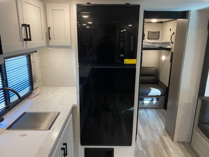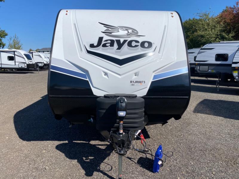 With any Jay Feather travel trailer by Jayco, you will experience an easy-to-tow, lightweight dual axle RV that is built on an American-made frame with an aerodynamic, rounded front profile with a diamond plate to protect against road debris, and includes Azdel composite in the perimeter walls, and Stronghold VBL vacuum-bonded, laminated floor and walls, plus the Magnum Truss roof system. Also included are features in the Customer Value package, and the Sport package which offers aluminum tread entry steps, roof-mount solar prep, an LED TV, and the Glacier package which includes an enclosed underbelly. The interior provides residential-style kitchen countertops with a decorative backsplash, residential plank-style vinyl flooring for easy care, a decorative wallboard for style, and ball-bearing drawer guides with 75 lb. capacity to mention a few of the amenities. Choose your favorite today!