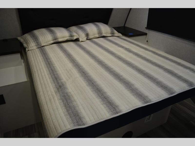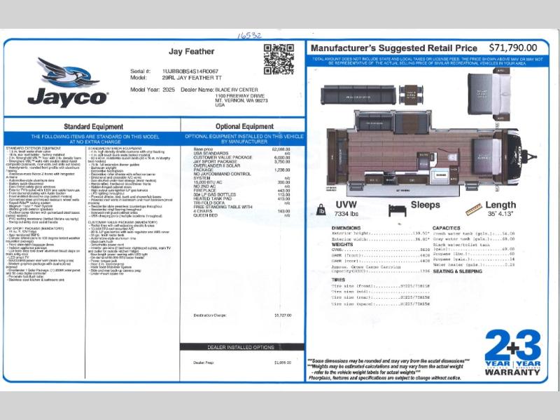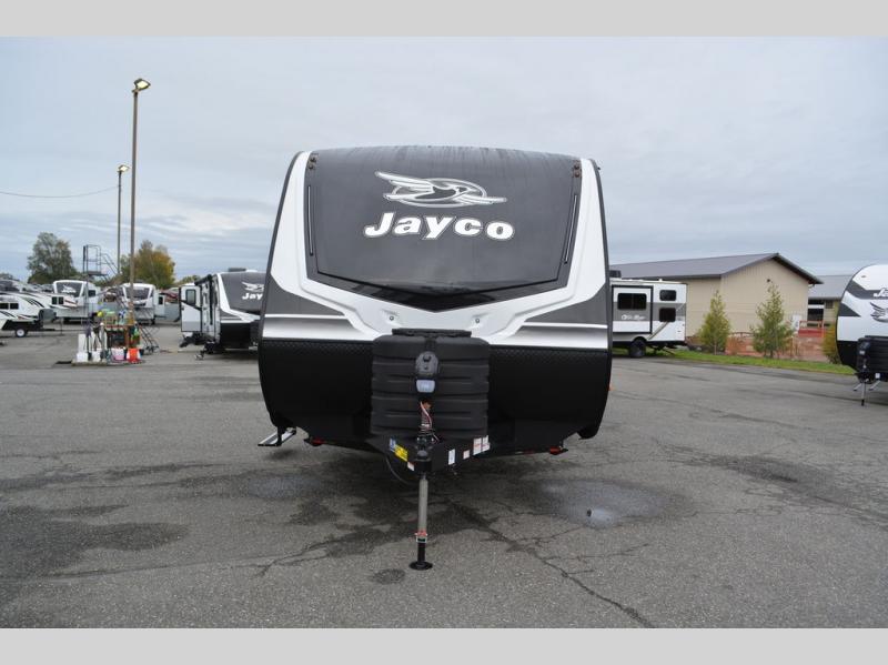 With any Jay Feather travel trailer by Jayco, you will enjoy lightweight towing, convenient exterior amenities, and at-home comforts inside! The Overlander 1 Solar Package included within the Jay Sport Package comes with a 200W solar panel and a 30-amp digital controller so you can enjoy some off-grid camping. There is also a modern graphics package with a dual-colored sidewall, LCI Solid Step fold-down aluminum tread steps on the main entry door, and Climate Shield 0 -100° F tested weather insulation package that will allow you to camp in all sorts of climates. The Customer Value Package will make time outdoors easier than ever with a power tongue jack and a Rock Solid stabilizer system, plus American-made nitro-filled Goodyear tires with self-adjusting electric brakes. More exterior features include a Keyed-Alike locking system, marine grade exterior speakers, a Magnum Truss roof system, and the list goes on! And we haven't even touched on the interior comforts, like the residential style seamless countertops and vinyl flooring throughout, decorative backsplash, handcrafted hardwood door/drawer fronts, and multiple USB charging ports to keep you going!