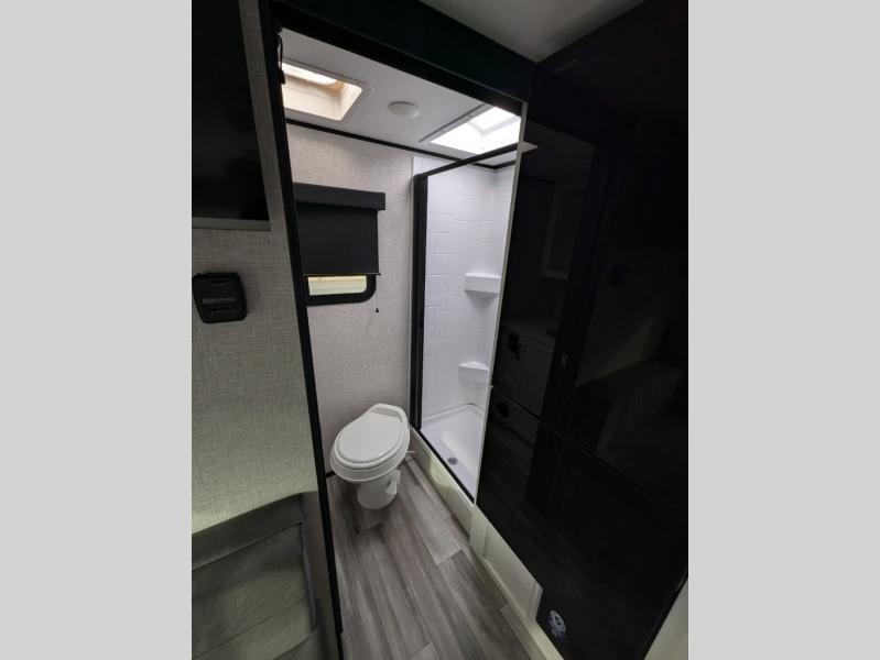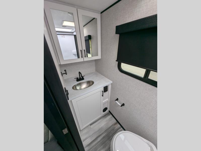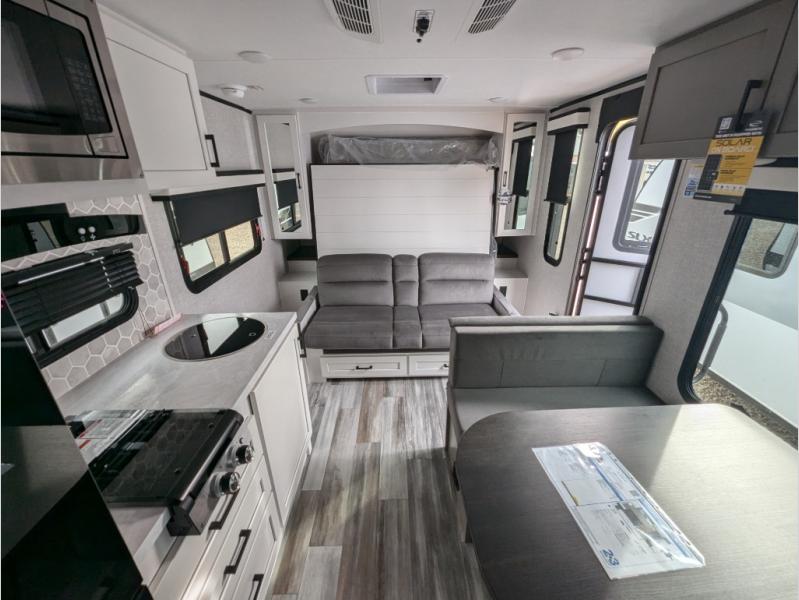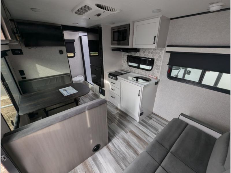 This is the perfect travel trailer for two to three campers! You'll have plenty of space during the day since there is a sofa up front, with a Murphy bed that can be folded down when you're ready for bed. There are also dual bedside wardrobes and nightstands to keep your space tidy. Breakfast can be made on the two burner cooktop or in the convection microwave, and there is a booth dinette where you can dine together. If the weather is nice, you may just find yourselves cooking on the exterior griddle and dining under the 13' awning! The full rear bath is sure to come in handy, and there is plenty of storage throughout to keep all your belongings put away!