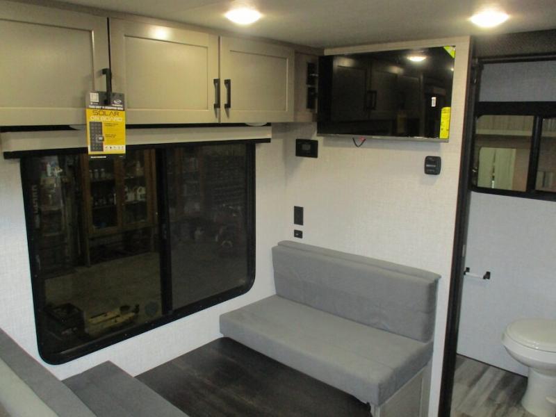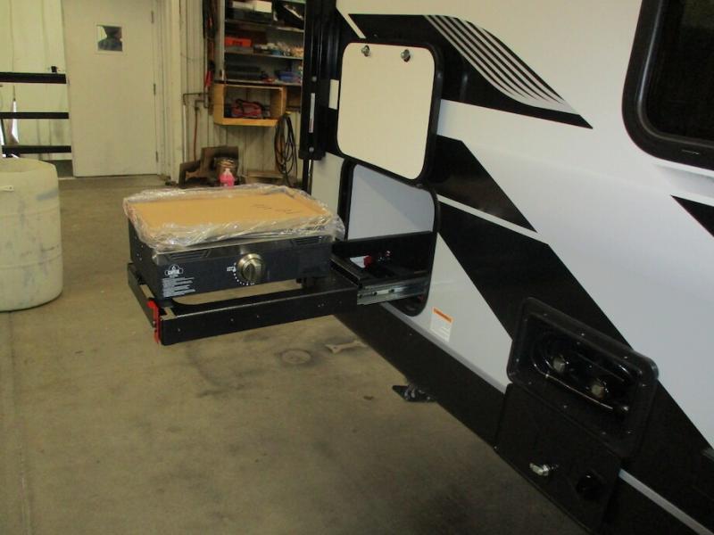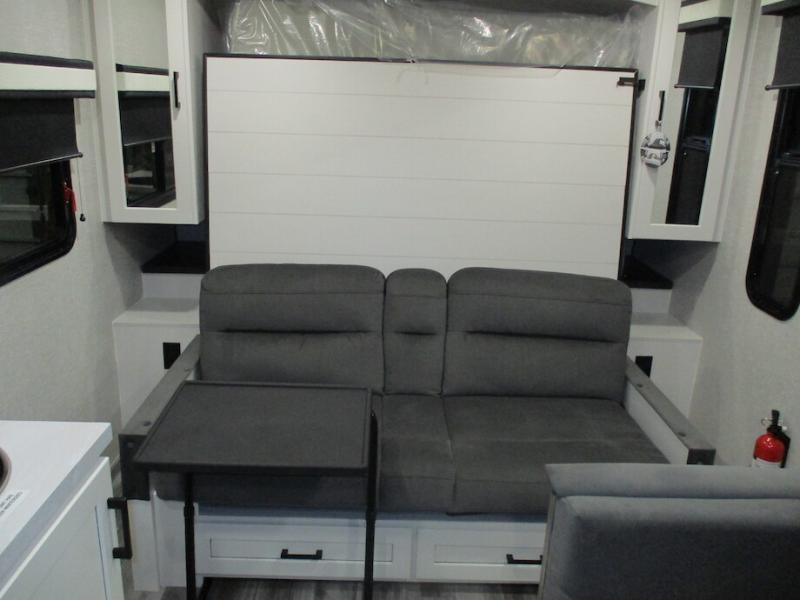 This is the perfect travel trailer for two to three campers! You'll have plenty of space during the day since there is a sofa up front, with a Murphy bed that can be folded down when you're ready for bed. There are also dual bedside wardrobes and nightstands to keep your space tidy. Breakfast can be made on the two burner cooktop or in the convection microwave, and there is a booth dinette where you can dine together. If the weather is nice, you may just find yourselves cooking on the exterior griddle and dining under the 13' awning! The full rear bath is sure to come in handy, and there is plenty of storage throughout to keep all your belongings put away!