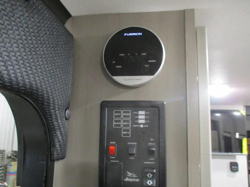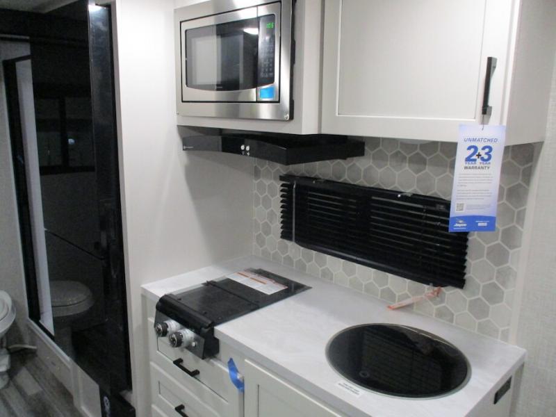 With any Jay Feather Air travel trailer by Jayco, you will enjoy lightweight towing and a variety of features to make each camping trip count! The Climate Shield insulation system helps extend your camping season by keeping you comfortable even in extreme weather conditions, and the Rock Solid stabilizer system means set up will be a breeze. An 18" rear roof ladder lets you easily clean the top of your Magnum Truss roof, and the 2" receiver will be perfect for your bike rack. The Overland 1 Solar Package with a 200W solar panel and 30-amp controller will provide off-grid capabilities, or you can can choose the optional Overland 2 Solar Package with two panels instead! Each Jay Feather Air includes residential-style seamless countertops inside, along with stainless steel sinks, decorative backsplash, and decorative roller shades with a reflective barrier to help keep the sun's rays out.