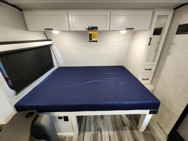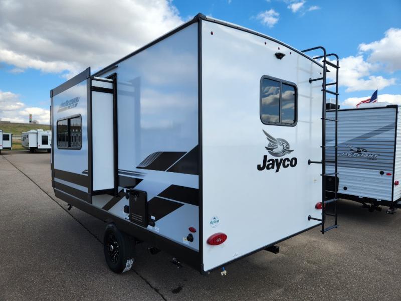 With any Jay Feather Air travel trailer by Jayco, you will enjoy lightweight towing and a variety of features to make each camping trip count! The Climate Shield insulation system helps extend your camping season by keeping you comfortable even in extreme weather conditions, and the Rock Solid stabilizer system means set up will be a breeze. An 18" rear roof ladder lets you easily clean the top of your Magnum Truss roof, and the 2" receiver will be perfect for your bike rack. The Overland 1 Solar Package with a 200W solar panel and 30-amp controller will provide off-grid capabilities, or you can can choose the optional Overland 2 Solar Package with two panels instead! Each Jay Feather Air includes residential-style seamless countertops inside, along with stainless steel sinks, decorative backsplash, and decorative roller shades with a reflective barrier to help keep the sun's rays out.