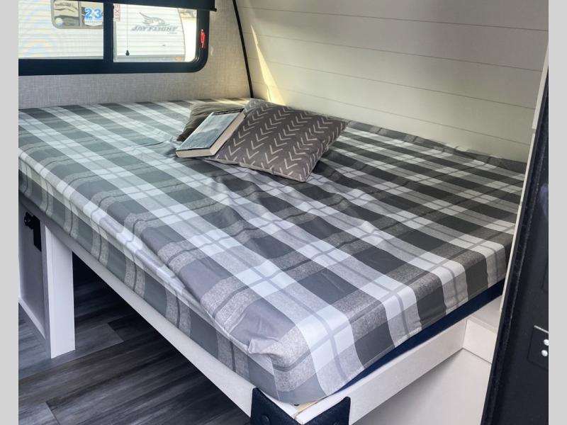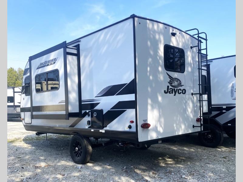 With any Jay Feather Air travel trailer by Jayco, you will enjoy lightweight towing and a variety of features to make each camping trip count! The Climate Shield insulation system helps extend your camping season by keeping you comfortable even in extreme weather conditions, and the Rock Solid stabilizer system means set up will be a breeze. An 18" rear roof ladder lets you easily clean the top of your Magnum Truss roof, and the 2" receiver will be perfect for your bike rack. The Overland 1 Solar Package with a 200W solar panel and 30-amp controller will provide off-grid capabilities, or you can can choose the optional Overland 2 Solar Package with two panels instead! Each Jay Feather Air includes residential-style seamless countertops inside, along with stainless steel sinks, decorative backsplash, and decorative roller shades with a reflective barrier to help keep the sun's rays out.