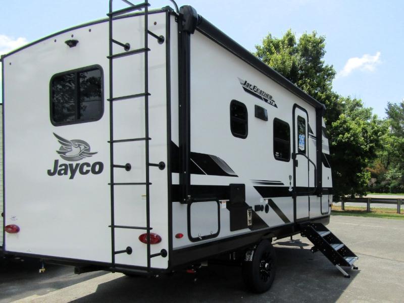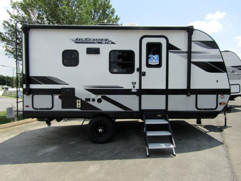 With any Jay Feather Air travel trailer by Jayco, you will enjoy lightweight towing and a variety of features to make each camping trip count! The Climate Shield insulation system helps extend your camping season by keeping you comfortable even in extreme weather conditions, and the Rock Solid stabilizer system means set up will be a breeze. An 18" rear roof ladder lets you easily clean the top of your Magnum Truss roof, and the 2" receiver will be perfect for your bike rack. The Overland 1 Solar Package with a 200W solar panel and 30-amp controller will provide off-grid capabilities, or you can can choose the optional Overland 2 Solar Package with two panels instead! Each Jay Feather Air includes residential-style seamless countertops inside, along with stainless steel sinks, decorative backsplash, and decorative roller shades with a reflective barrier to help keep the sun's rays out.