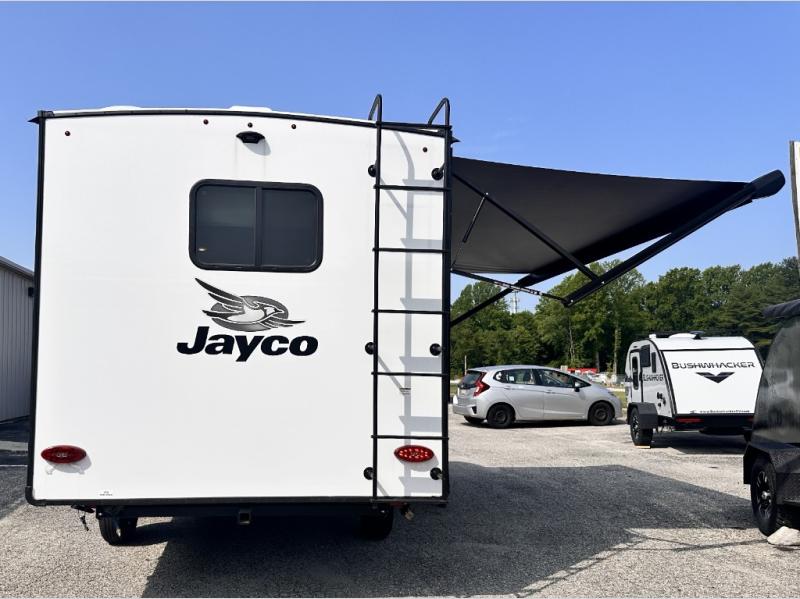 With any Jay Feather Air travel trailer by Jayco, you will enjoy lightweight towing and a variety of features to make each camping trip count! The Climate Shield insulation system helps extend your camping season by keeping you comfortable even in extreme weather conditions, and the Rock Solid stabilizer system means set up will be a breeze. An 18" rear roof ladder lets you easily clean the top of your Magnum Truss roof, and the 2" receiver will be perfect for your bike rack. The Overland 1 Solar Package with a 200W solar panel and 30-amp controller will provide off-grid capabilities, or you can can choose the optional Overland 2 Solar Package with two panels instead! Each Jay Feather Air includes residential-style seamless countertops inside, along with stainless steel sinks, decorative backsplash, and decorative roller shades with a reflective barrier to help keep the sun's rays out.
