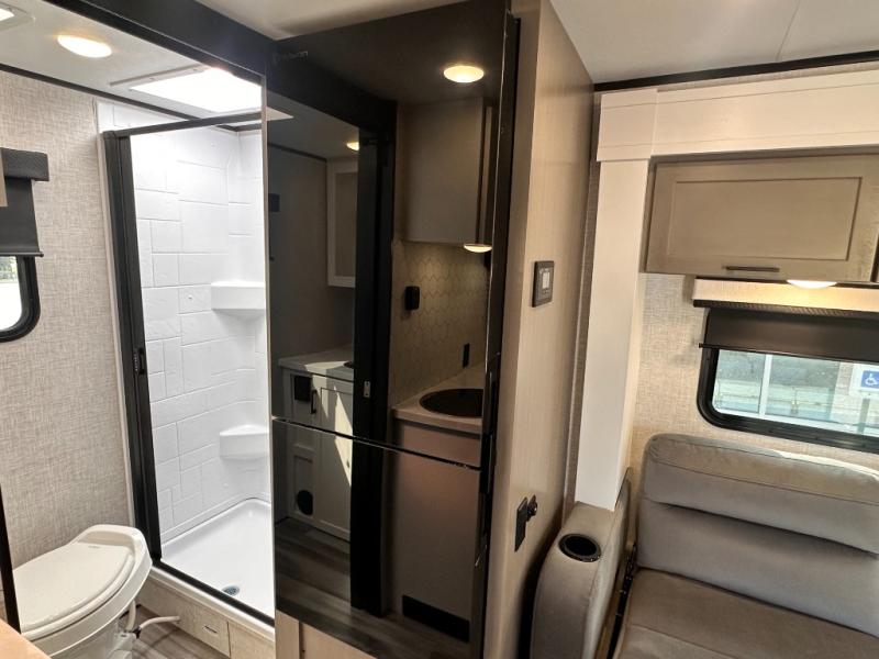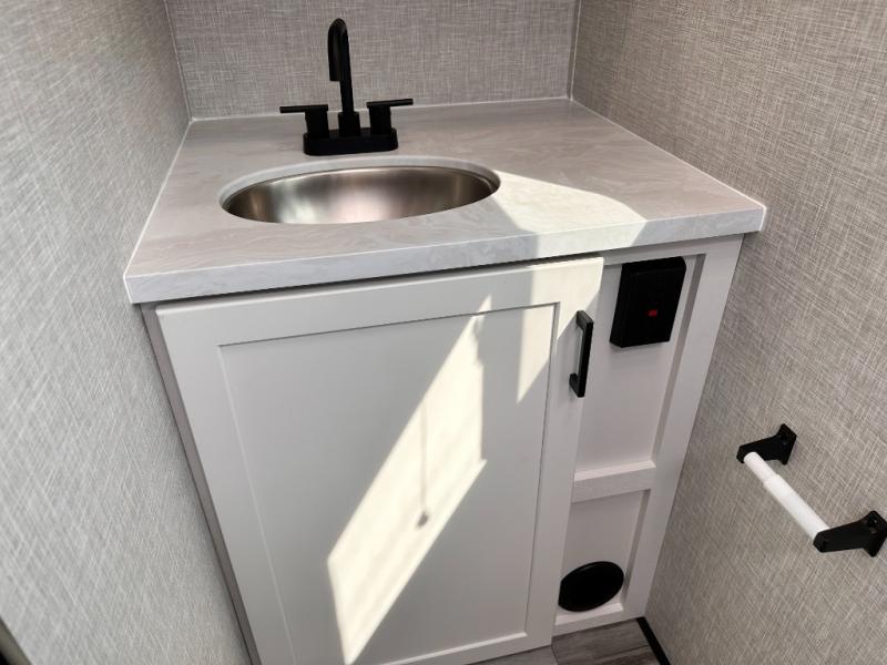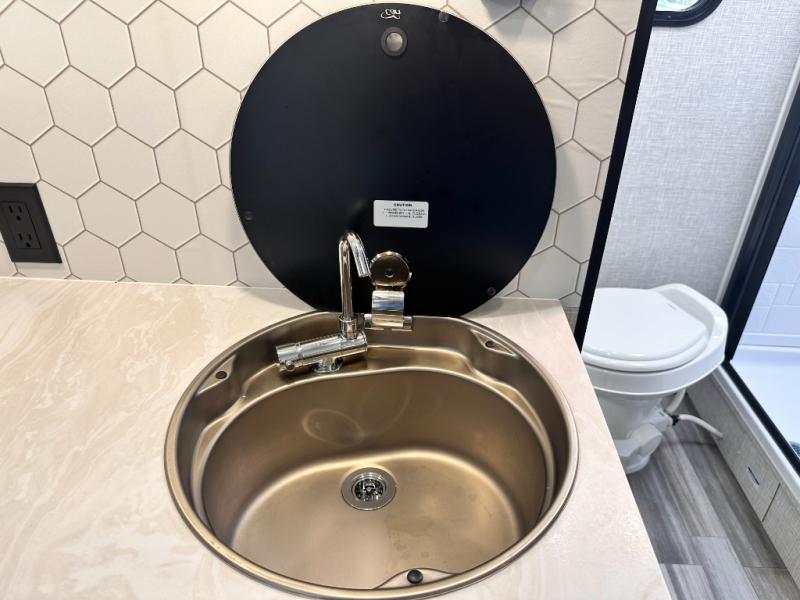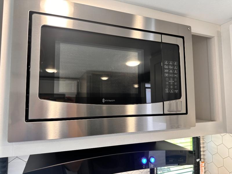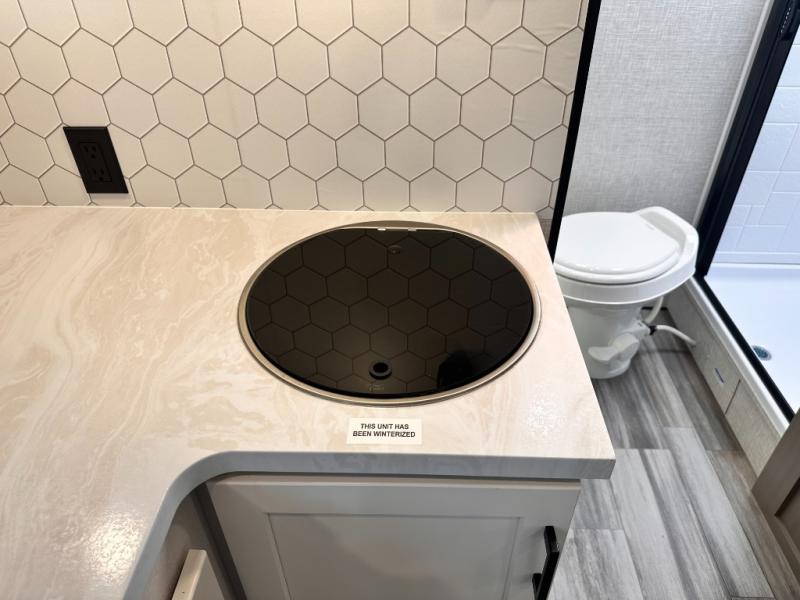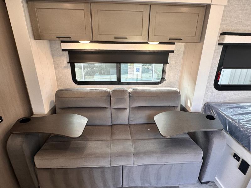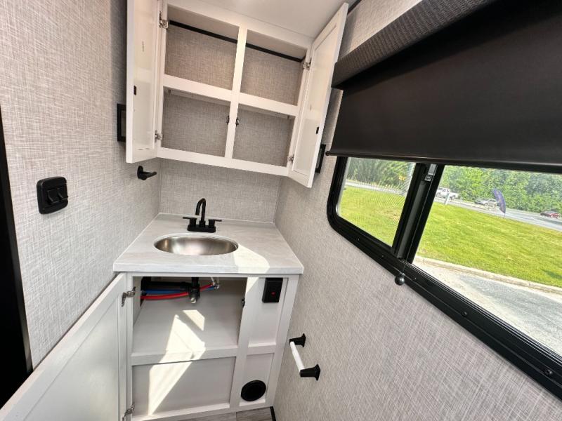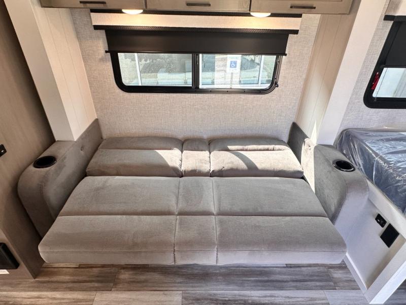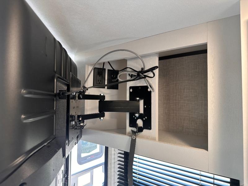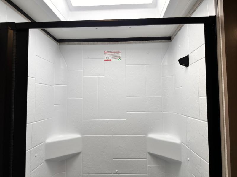 This travel trailer will feel just like home with its front queen bed, full rear bath, and fully-equipped kitchen! There is a jack-knife sofa slide out where you can relax each day, and there are swivel tables so you can enjoy meals here too. The LED Smart TV will let you stay in and watch movies if the weather isn't cooperating, or you can grab the fishing gear from the outside storage and weather the storm! You'll also find plenty of interior storage in the multiple overhead cabinets and the bath medicine cabinet!