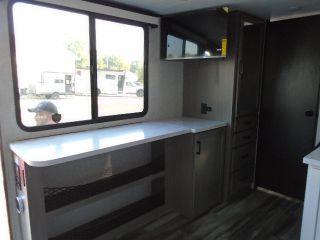 With any Jay Feather Air travel trailer by Jayco, you will enjoy lightweight towing and a variety of features to make each camping trip count! The Climate Shield insulation system helps extend your camping season by keeping you comfortable even in extreme weather conditions, and the Rock Solid stabilizer system means set up will be a breeze. An 18" rear roof ladder lets you easily clean the top of your Magnum Truss roof, and the 2" receiver will be perfect for your bike rack. The Overland 1 Solar Package with a 200W solar panel and 30-amp controller will provide off-grid capabilities, or you can can choose the optional Overland 2 Solar Package with two panels instead! Each Jay Feather Air includes residential-style seamless countertops inside, along with stainless steel sinks, decorative backsplash, and decorative roller shades with a reflective barrier to help keep the sun's rays out.