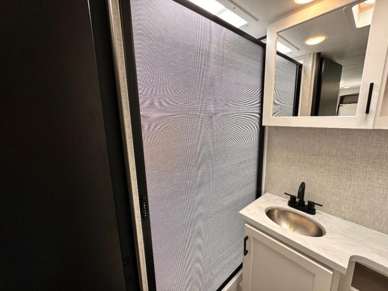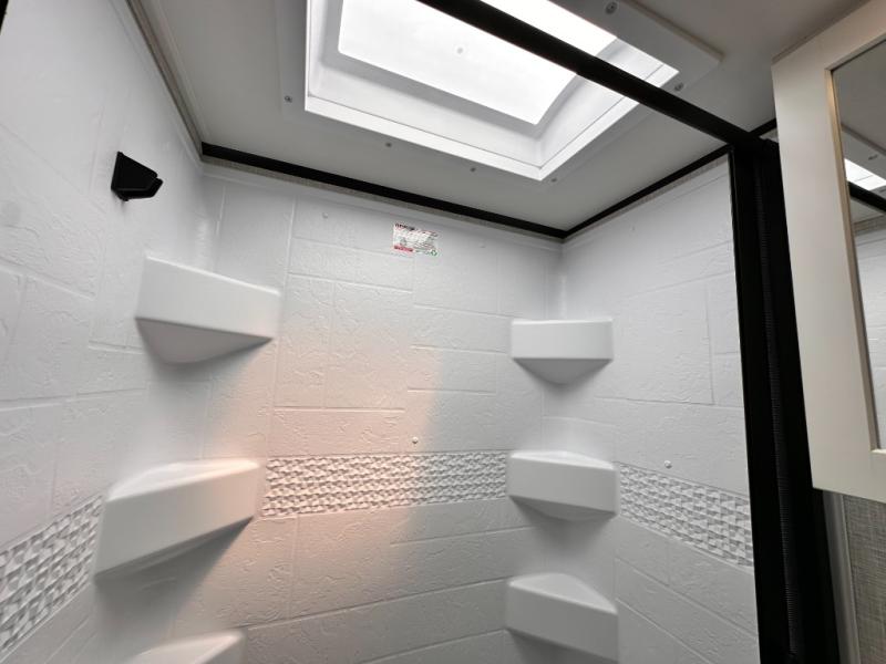 With any Jay Feather Air travel trailer by Jayco, you will enjoy lightweight towing and a variety of features to make each camping trip count! The Climate Shield insulation system helps extend your camping season by keeping you comfortable even in extreme weather conditions, and the Rock Solid stabilizer system means set up will be a breeze. An 18" rear roof ladder lets you easily clean the top of your Magnum Truss roof, and the 2" receiver will be perfect for your bike rack. The Overland 1 Solar Package with a 200W solar panel and 30-amp controller will provide off-grid capabilities, or you can can choose the optional Overland 2 Solar Package with two panels instead! Each Jay Feather Air includes residential-style seamless countertops inside, along with stainless steel sinks, decorative backsplash, and decorative roller shades with a reflective barrier to help keep the sun's rays out.