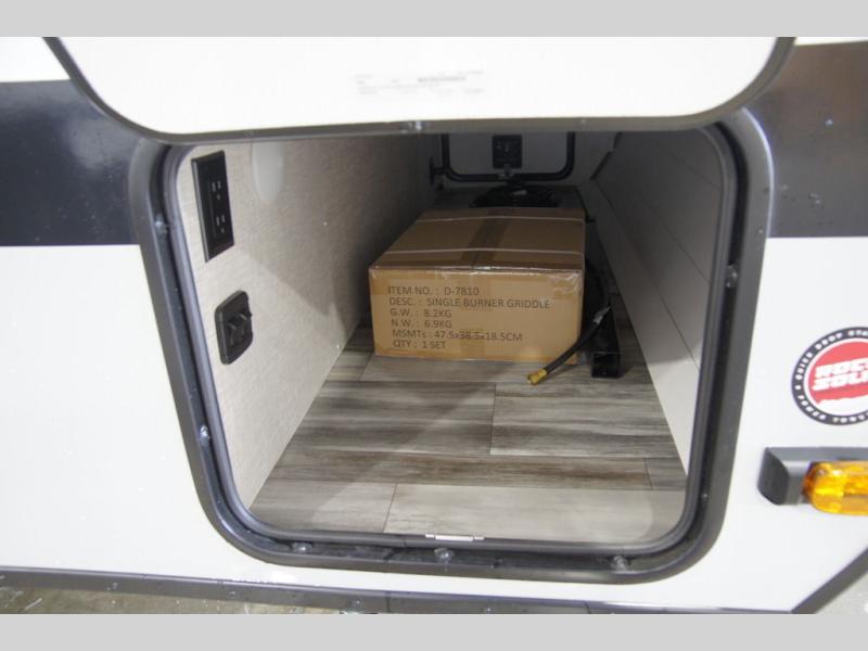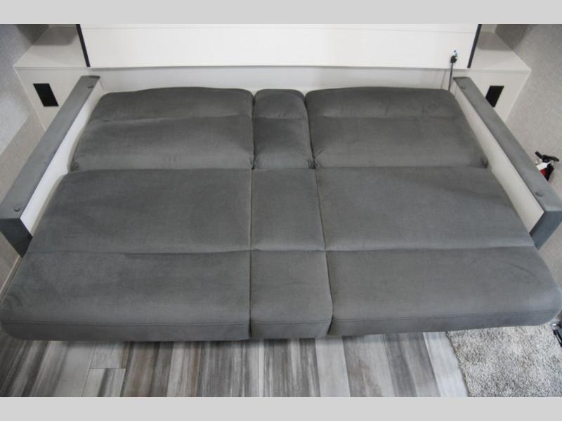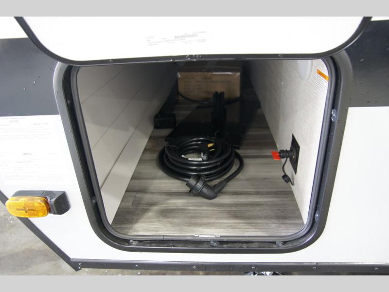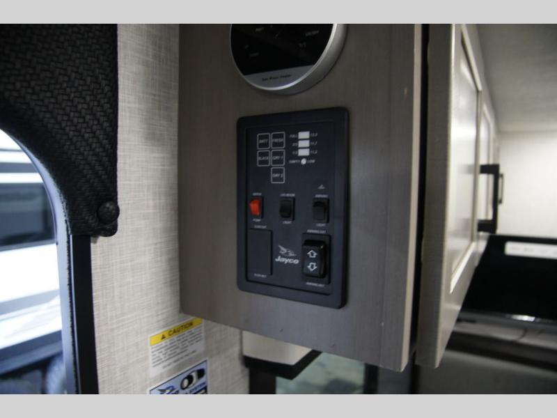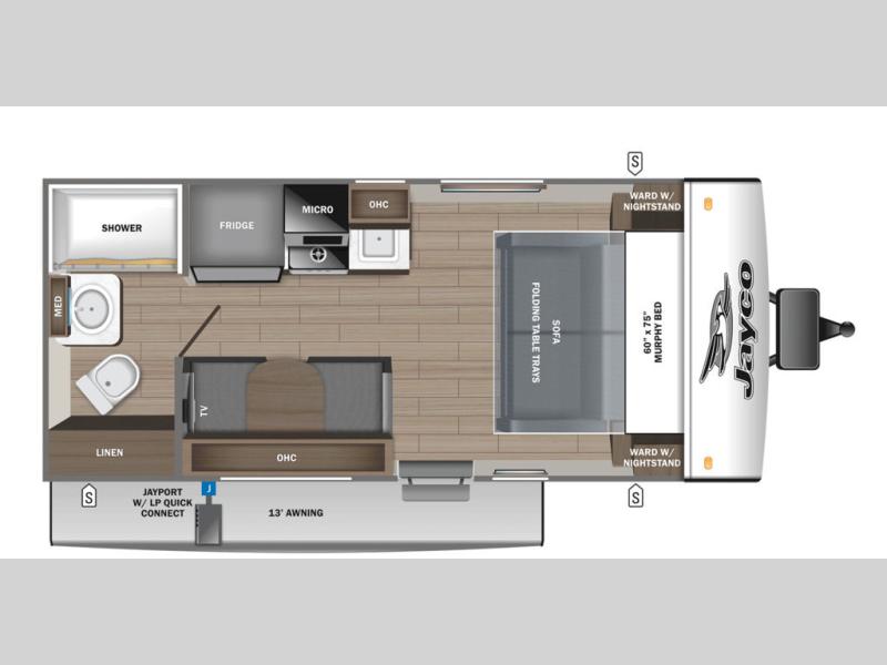 This versatile travel trailer is the perfect couple's trailer with space for an overnight guest on the booth dinette. The front sofa will provide space to relax during the day, and you can fold down the Murphy bed when you're ready to sleep. Whip up some eggs on the three burner cooktop, or use the microwave oven for instant oatmeal, plus there is an outside griddle for the JayPort system so you can make breakfast outside. This model also includes a spacious full rear bath with a shower, medicine cabinet, plus a large linen closet for clean towels.