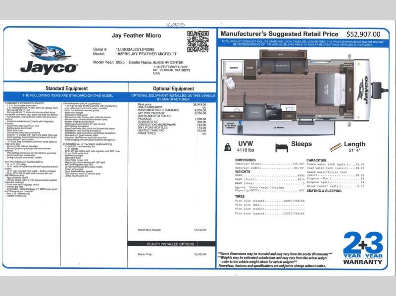 New 2025 Jayco Jay Feather Micro 183FBS Travel Trailer