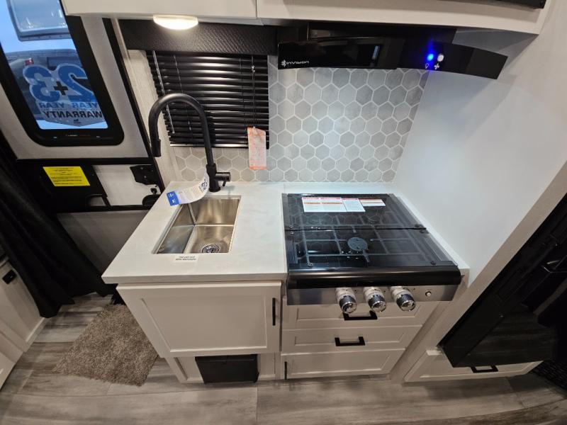 Jayco's Jay Feather Micro travel trailer is ready for adventure at the drop of a hat! The Climate Shield weather protection will let you camp well into the colder months and the Stronghold VBL with double-sized Azdel is ultra durable. The Jay Pro Package includes radial tires with self-adjusting brakes, a rear-mounted roof ladder, and the Overlander 1 Solar Package with a 200W solar panel. Additional exterior features include marine grade exterior speakers, a swing-out entry door assist handle, a power tongue jack, and more! Inside, you will love the 4-inch high-density dinette cushions with vinyl backing for easy cleaning, along with the handcrafted hardwood door/drawer fronts, residential style kitchen countertops, and decorative roller shades with a reflective barrier for better insulation.