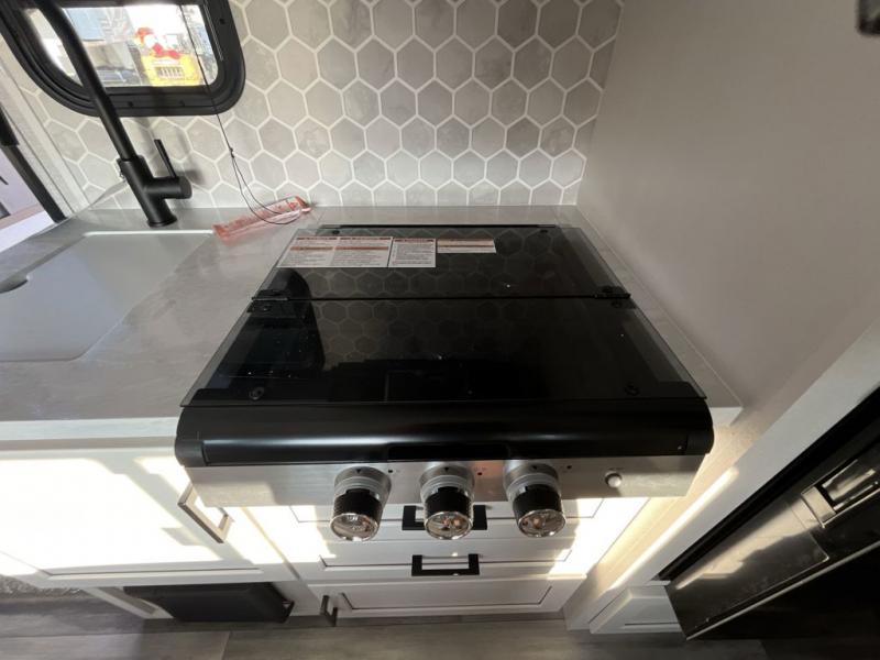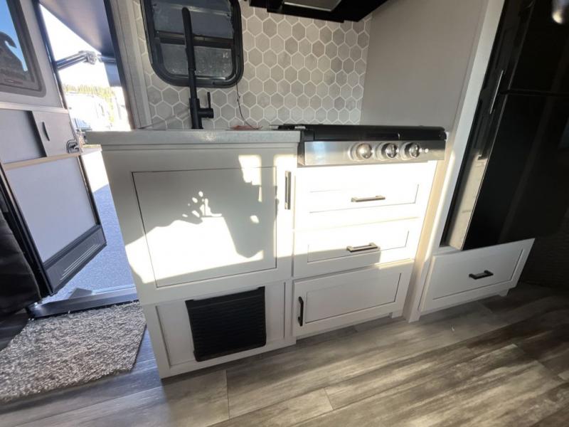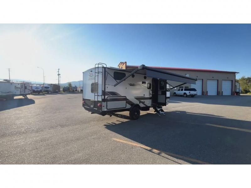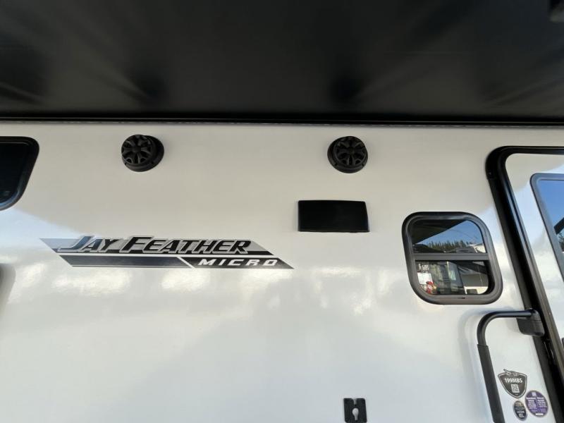 Jayco's Jay Feather Micro travel trailer is ready for adventure at the drop of a hat! The Climate Shield weather protection will let you camp well into the colder months and the Stronghold VBL with double-sized Azdel is ultra durable. The Jay Pro Package includes radial tires with self-adjusting brakes, a rear-mounted roof ladder, and the Overlander 1 Solar Package with a 200W solar panel. Additional exterior features include marine grade exterior speakers, a swing-out entry door assist handle, a power tongue jack, and more! Inside, you will love the 4-inch high-density dinette cushions with vinyl backing for easy cleaning, along with the handcrafted hardwood door/drawer fronts, residential style kitchen countertops, and decorative roller shades with a reflective barrier for better insulation.