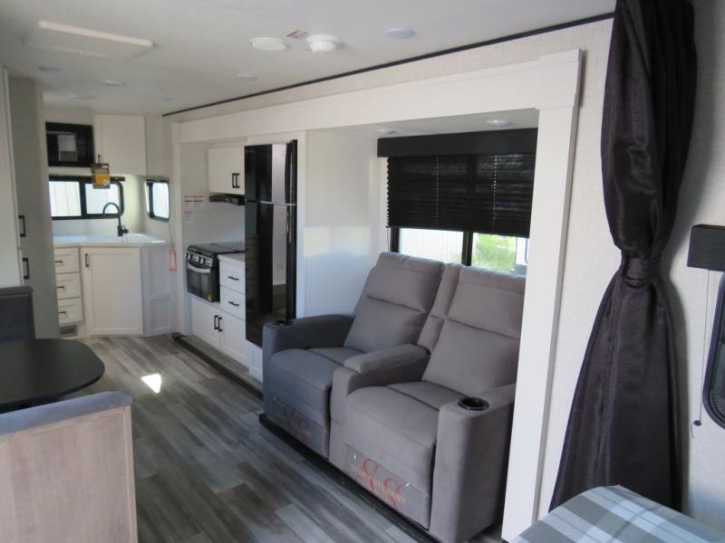 With any Jay Flight travel trailer or toy hauler by Jayco, you can enjoy camping trips to the max! There are a wide variety of floorplans to choose from, so whether you're looking for a couple's unit or bunkhouse model, there is sure to be a Jay Flight for you. Each model is constructed with a Magnum Truss roof system, an enclosed and heated underbelly, and I-Class cambered structural steel I-beams for added support. The interior will have you feeling right at home with residential-style kitchen countertops and hidden cabinet door hinges, vinyl flooring throughout, including slide floors, plus a 6' 9" ceiling height for added head space. The standard features continue on with the mandatory Customer Value Package that includes Keyed-Alike entry and baggage doors, an Overland 1 Solar Package, a Rock-Solid stabilizer system, backup and side view camera prep, and so much more!