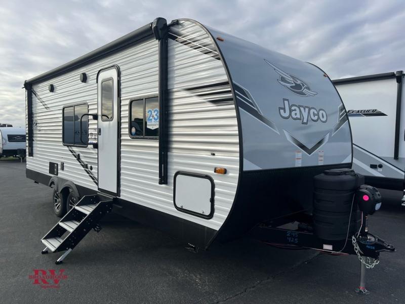 With any Jay Flight travel trailer or toy hauler by Jayco, you can enjoy camping trips to the max! There are a wide variety of floorplans to choose from, so whether you're looking for a couple's unit or bunkhouse model, there is sure to be a Jay Flight for you. Each model is constructed with a Magnum Truss roof system, an enclosed and heated underbelly, and I-Class cambered structural steel I-beams for added support. The interior will have you feeling right at home with residential-style kitchen countertops and hidden cabinet door hinges, vinyl flooring throughout, including slide floors, plus a 6' 9" ceiling height for added head space. The standard features continue on with the mandatory Customer Value Package that includes Keyed-Alike entry and baggage doors, an Overland 1 Solar Package, a Rock-Solid stabilizer system, backup and side view camera prep, and so much more!