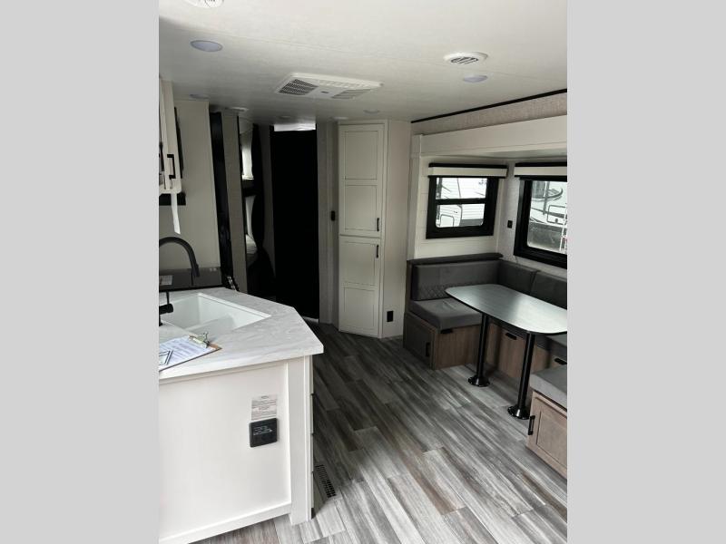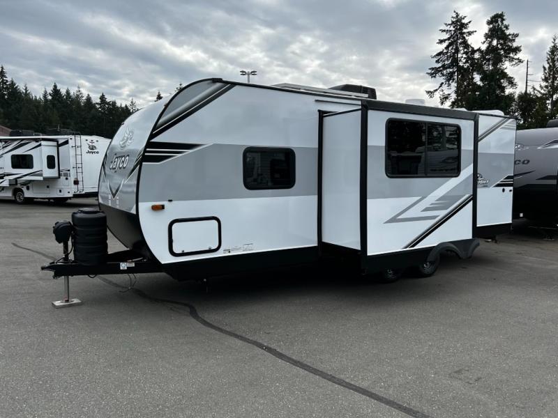 With any Jay Flight travel trailer or toy hauler by Jayco, you can enjoy camping trips to the max! There are a wide variety of floorplans to choose from, so whether you're looking for a couple's unit or bunkhouse model, there is sure to be a Jay Flight for you. Each model is constructed with a Magnum Truss roof system, an enclosed and heated underbelly, and I-Class cambered structural steel I-beams for added support. The interior will have you feeling right at home with residential-style kitchen countertops and hidden cabinet door hinges, vinyl flooring throughout, including slide floors, plus a 6' 9" ceiling height for added head space. The standard features continue on with the mandatory Customer Value Package that includes Keyed-Alike entry and baggage doors, an Overland 1 Solar Package, a Rock-Solid stabilizer system, backup and side view camera prep, and so much more!