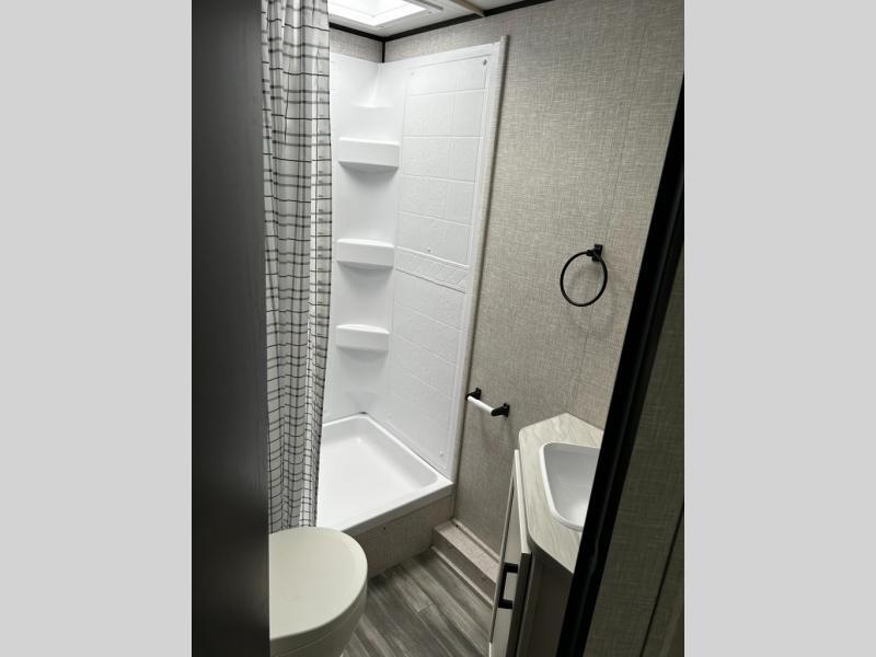 You can bring the whole family in this travel trailer! This unit can accommodate at least eight tired campers at night with a set of double-size bunks that sleep four, a semi-private bedroom up front with a 60" x 75" Murphy bed that can transform into a jackknife sofa, and the U-shaped dinette can also be transformed into added sleeping space at night. A large shower, toilet, and sink with linen storage makes it easy for everyone to stay clean and refreshed without having to use the public facilities!