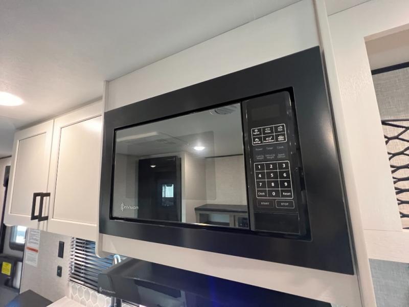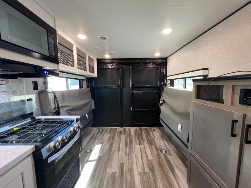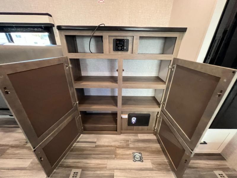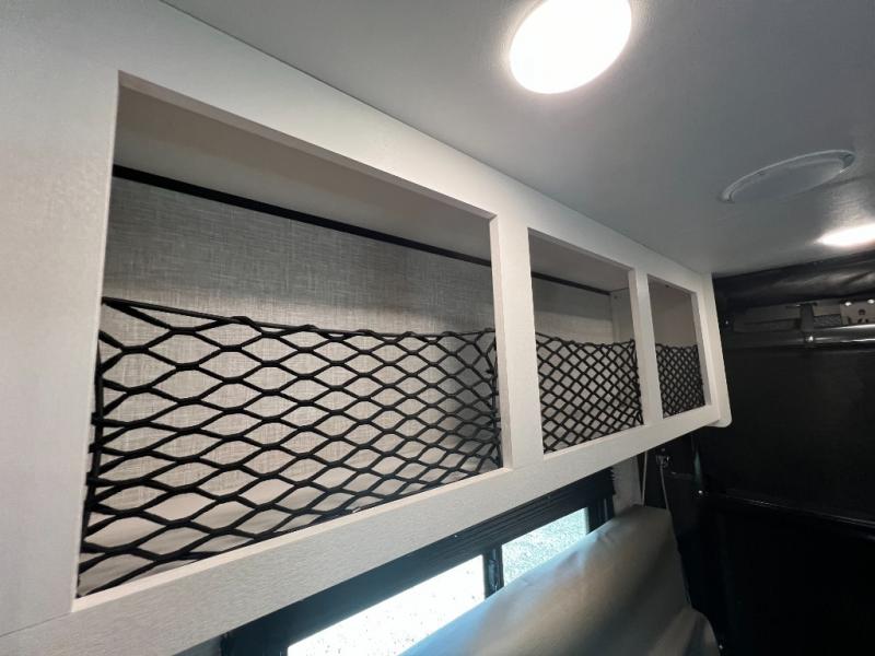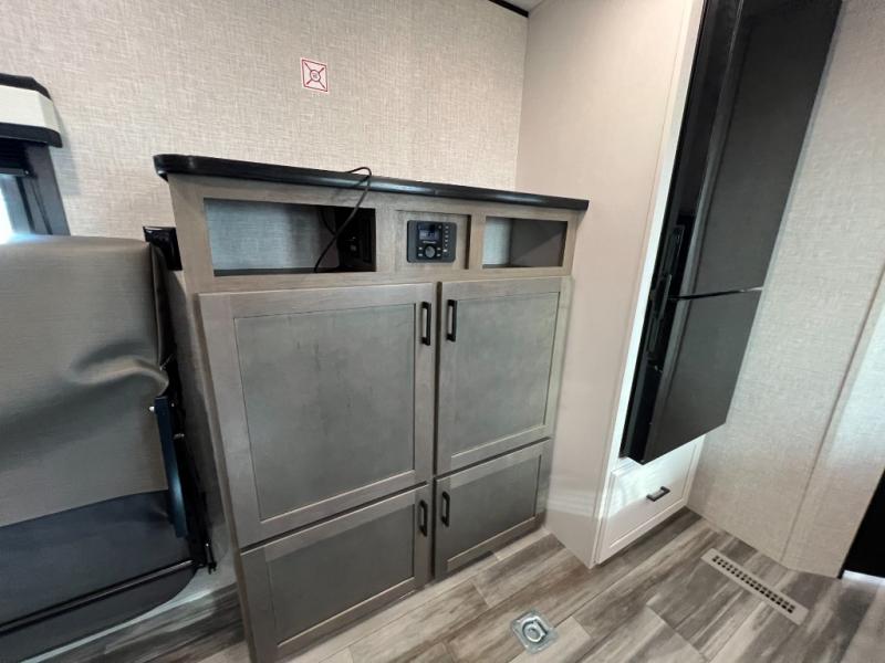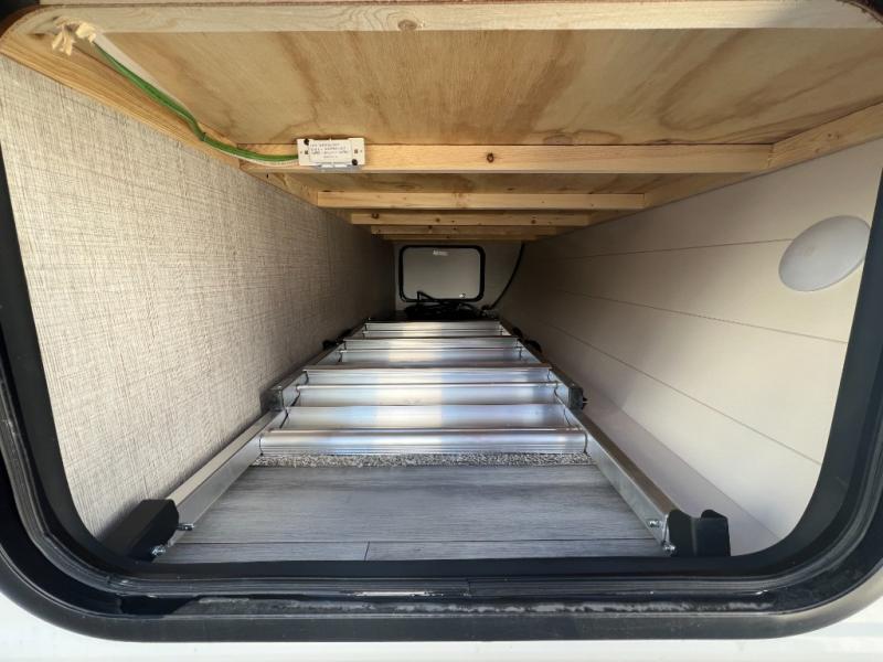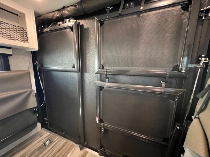 It's time to load up your off-road toys into a 5'11" cargo area with a little more space for gear that stretches into the kitchen area. Once unloaded, you will have convertible sofas and a removable table to enjoy meals at, plus the sofas offer sleeping space. You will have full kitchen amenities including a large pantry, and there is a double entry full bathroom with access from the main living area and kitchen as well as the front private bedroom. You will sleep soundly on the queen bed, and there are windows to look outside at the weather plus dual wardrobes to stow your clothing.
