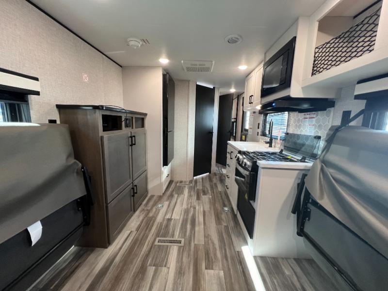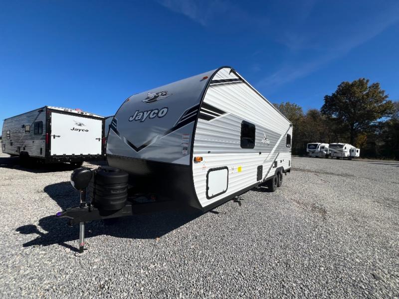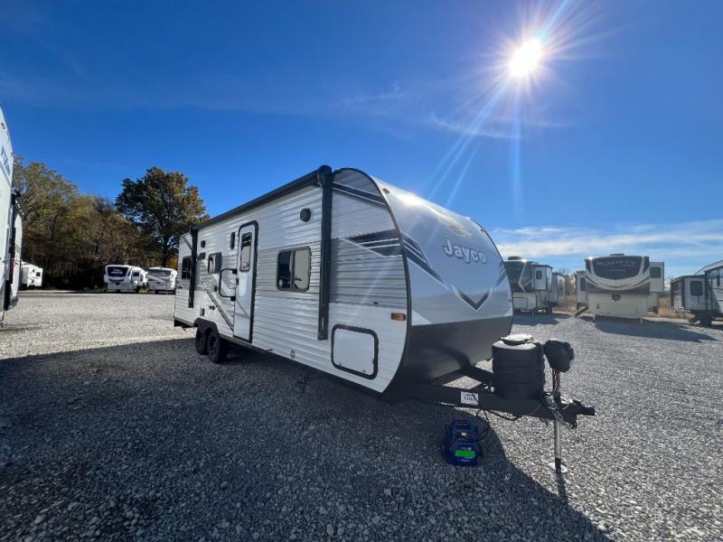 With any Jay Flight travel trailer or toy hauler by Jayco, you can enjoy camping trips to the max! There are a wide variety of floorplans to choose from, so whether you're looking for a couple's unit or bunkhouse model, there is sure to be a Jay Flight for you. Each model is constructed with a Magnum Truss roof system, an enclosed and heated underbelly, and I-Class cambered structural steel I-beams for added support. The interior will have you feeling right at home with residential-style kitchen countertops and hidden cabinet door hinges, vinyl flooring throughout, including slide floors, plus a 6' 9" ceiling height for added head space. The standard features continue on with the mandatory Customer Value Package that includes Keyed-Alike entry and baggage doors, an Overland 1 Solar Package, a Rock-Solid stabilizer system, backup and side view camera prep, and so much more!