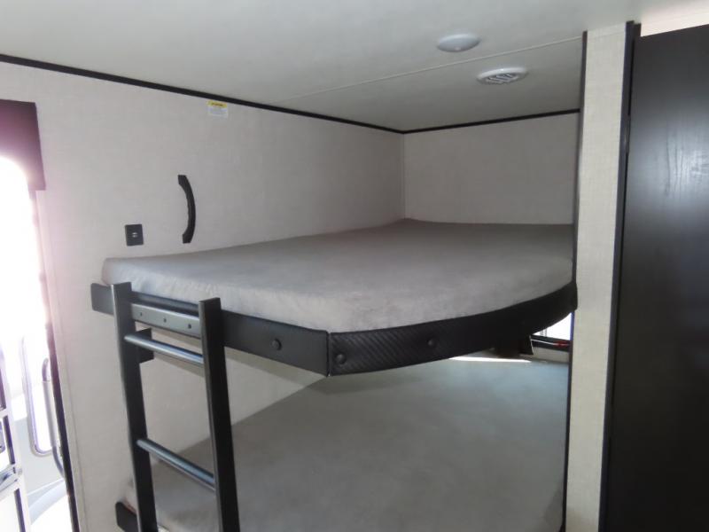 With any Jay Flight travel trailer or toy hauler by Jayco, you can enjoy camping trips to the max! There are a wide variety of floorplans to choose from, so whether you're looking for a couple's unit or bunkhouse model, there is sure to be a Jay Flight for you. Each model is constructed with a Magnum Truss roof system, an enclosed and heated underbelly, and I-Class cambered structural steel I-beams for added support. The interior will have you feeling right at home with residential-style kitchen countertops and hidden cabinet door hinges, vinyl flooring throughout, including slide floors, plus a 6' 9" ceiling height for added head space. The standard features continue on with the mandatory Customer Value Package that includes Keyed-Alike entry and baggage doors, an Overland 1 Solar Package, a Rock-Solid stabilizer system, backup and side view camera prep, and so much more!