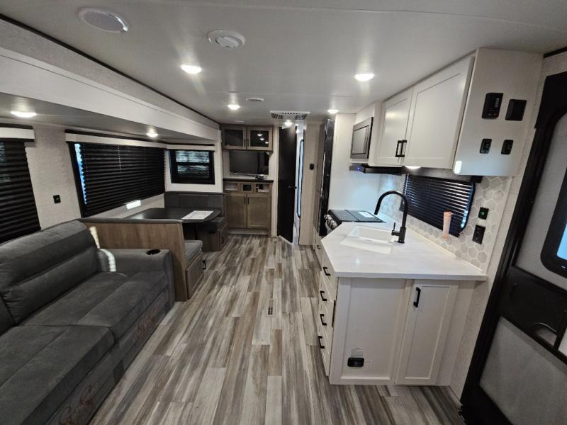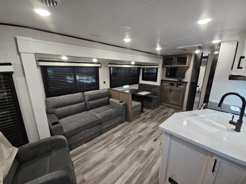 With any Jay Flight travel trailer or toy hauler by Jayco, you can enjoy camping trips to the max! There are a wide variety of floorplans to choose from, so whether you're looking for a couple's unit or bunkhouse model, there is sure to be a Jay Flight for you. Each model is constructed with a Magnum Truss roof system, an enclosed and heated underbelly, and I-Class cambered structural steel I-beams for added support. The interior will have you feeling right at home with residential-style kitchen countertops and hidden cabinet door hinges, vinyl flooring throughout, including slide floors, plus a 6' 9" ceiling height for added head space. The standard features continue on with the mandatory Customer Value Package that includes Keyed-Alike entry and baggage doors, an Overland 1 Solar Package, a Rock-Solid stabilizer system, backup and side view camera prep, and so much more!