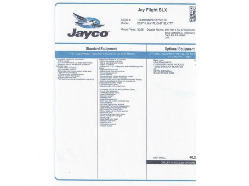 New 2025 Jayco Jay Flight 265TH Toy Hauler Travel Trailer